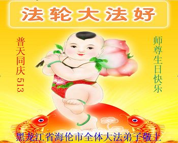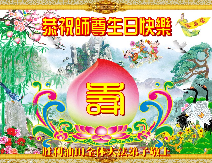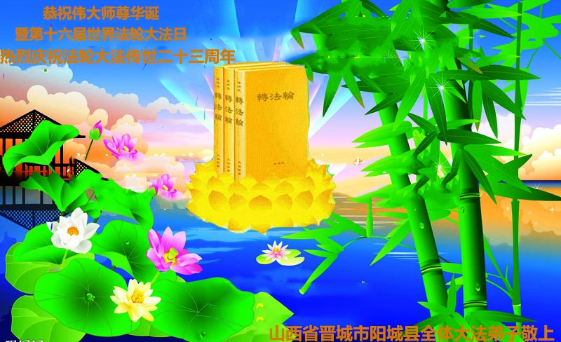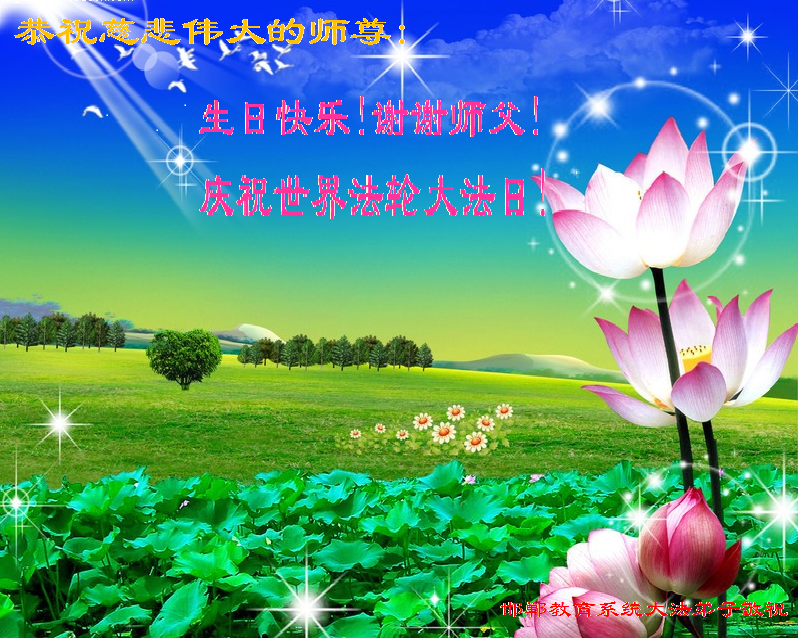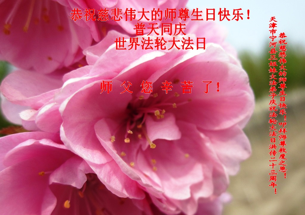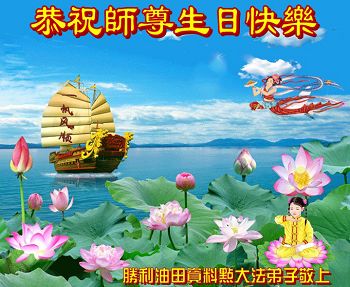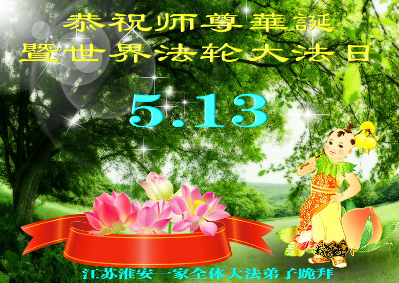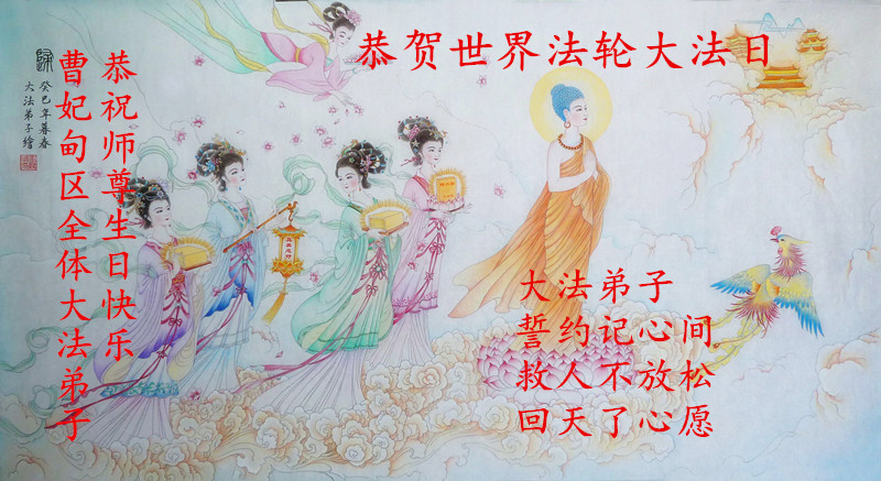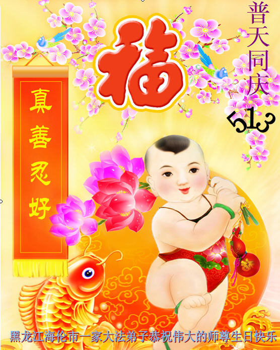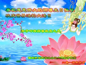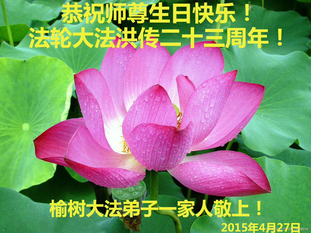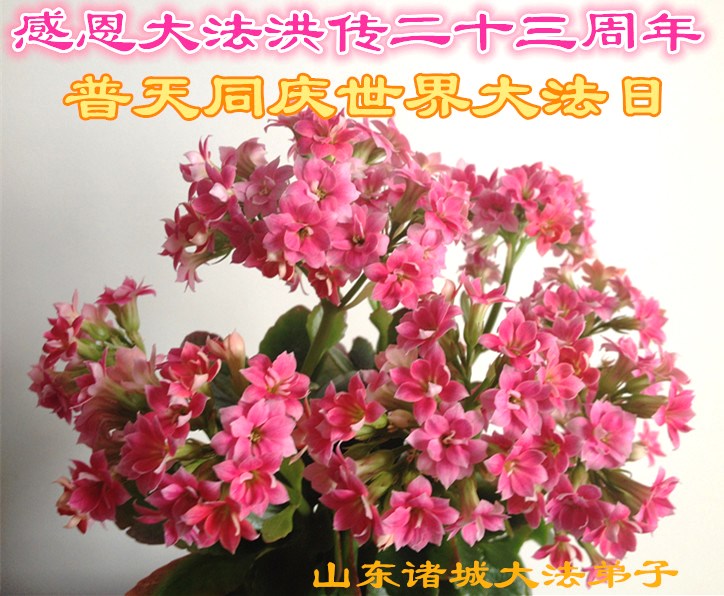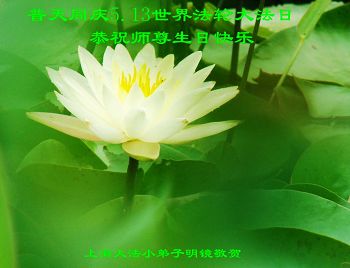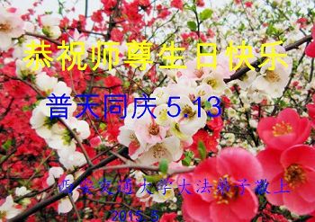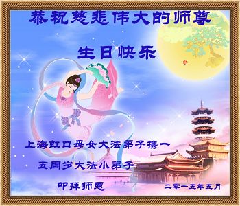 弟子们无法用语言、无限感恩师尊的慈悲苦度!叩祝慈悲伟大的师尊生日快乐!并与世界各地各位大法弟子及明真相的世人普天同庆法轮大法洪传二十三周年暨欢庆第十六届世界法轮大法日!