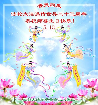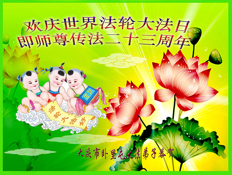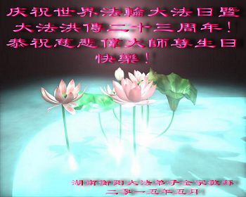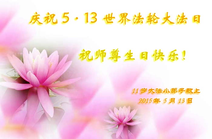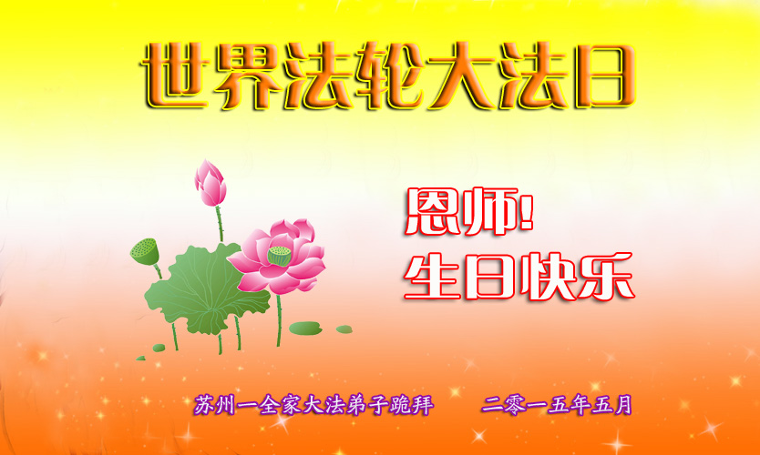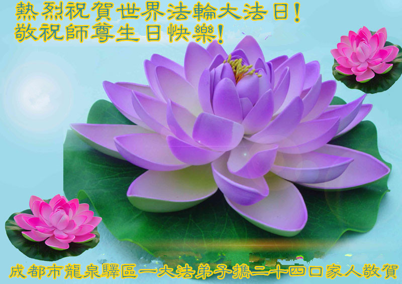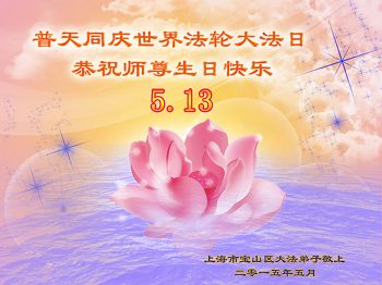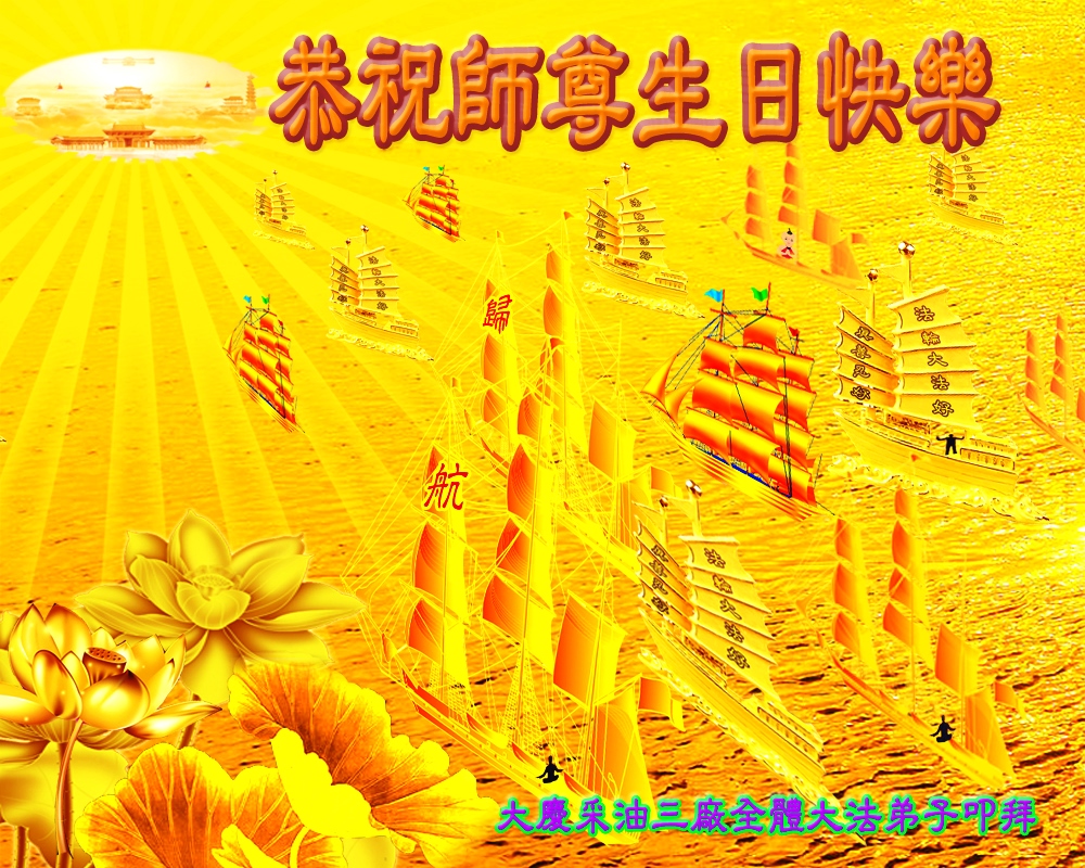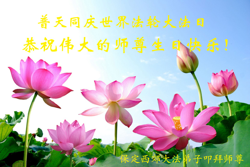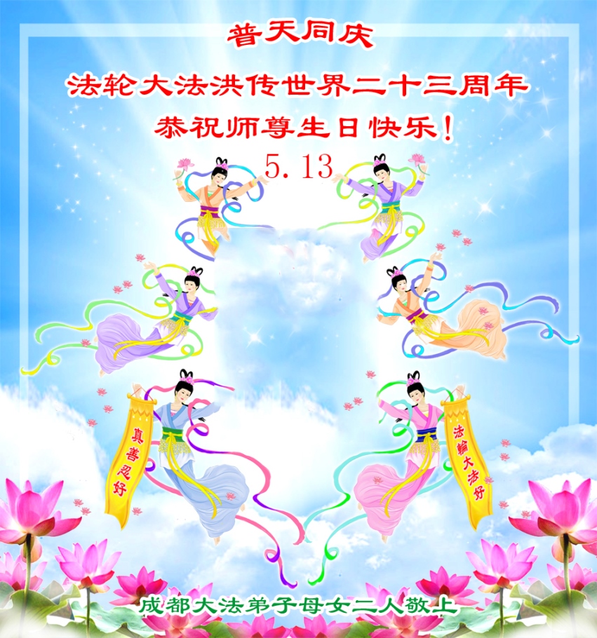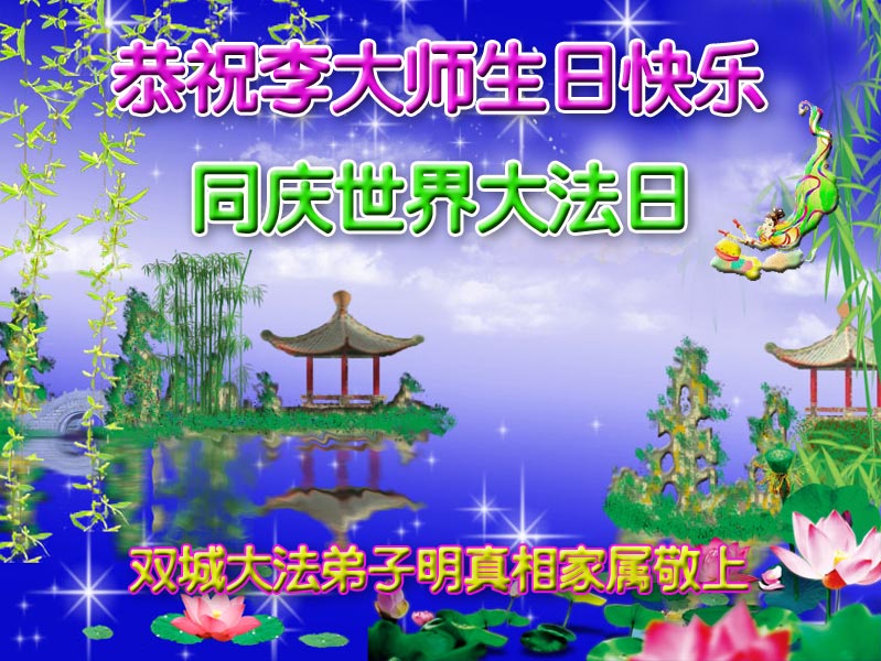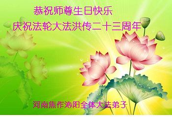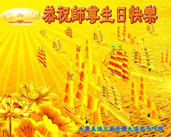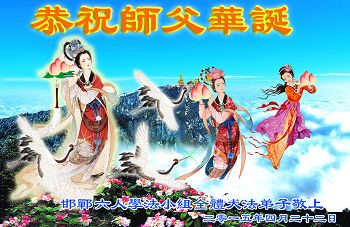 弟子们无法用语言、无限感恩师尊的慈悲苦度!叩祝慈悲伟大的师尊生日快乐!并与世界各地各位大法弟子及明真相的世人普天同庆法轮大法洪传二十三周年暨欢庆第十六届世界法轮大法日!