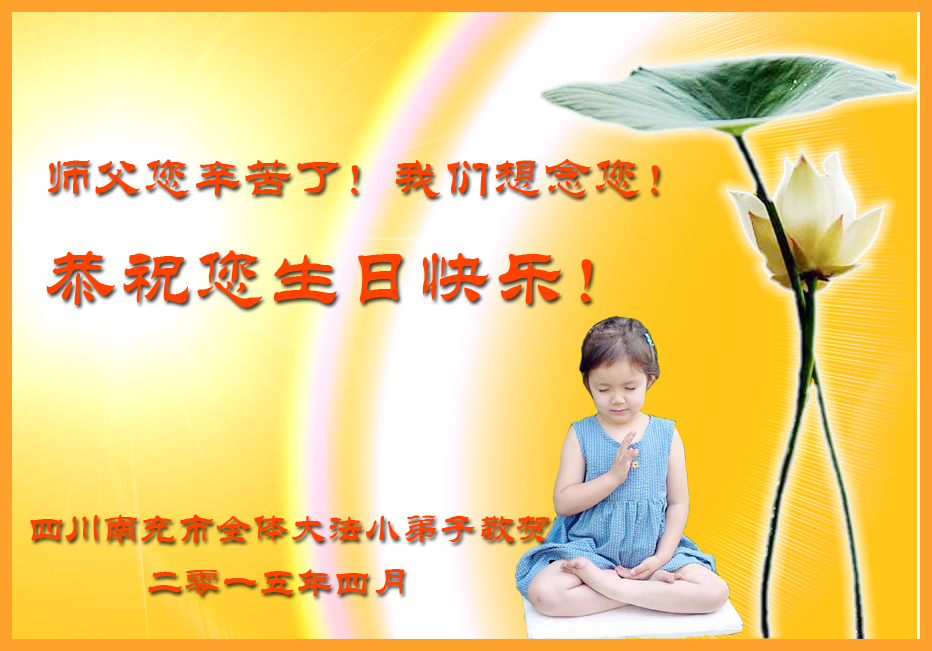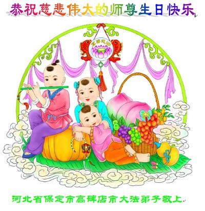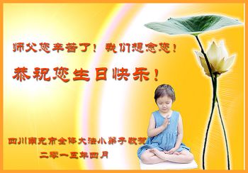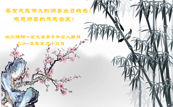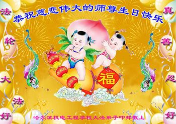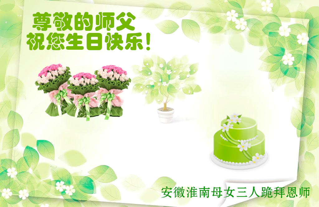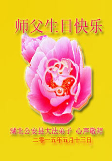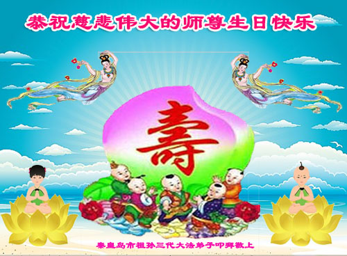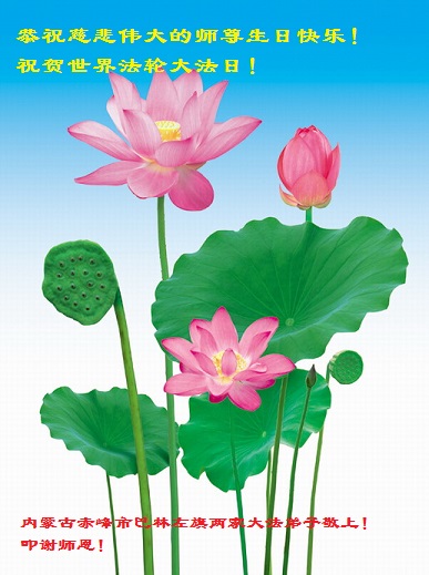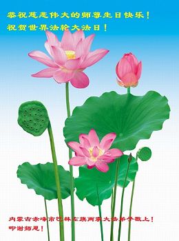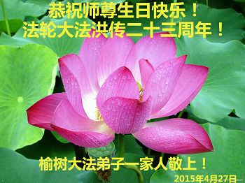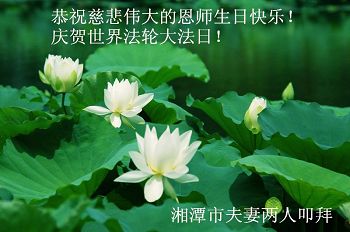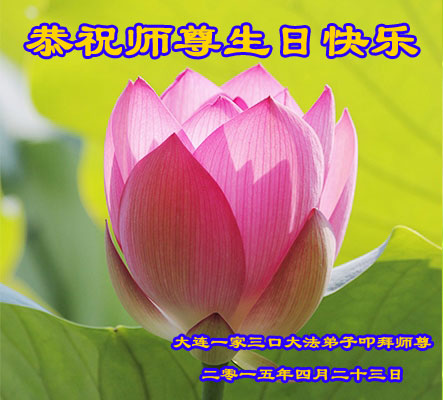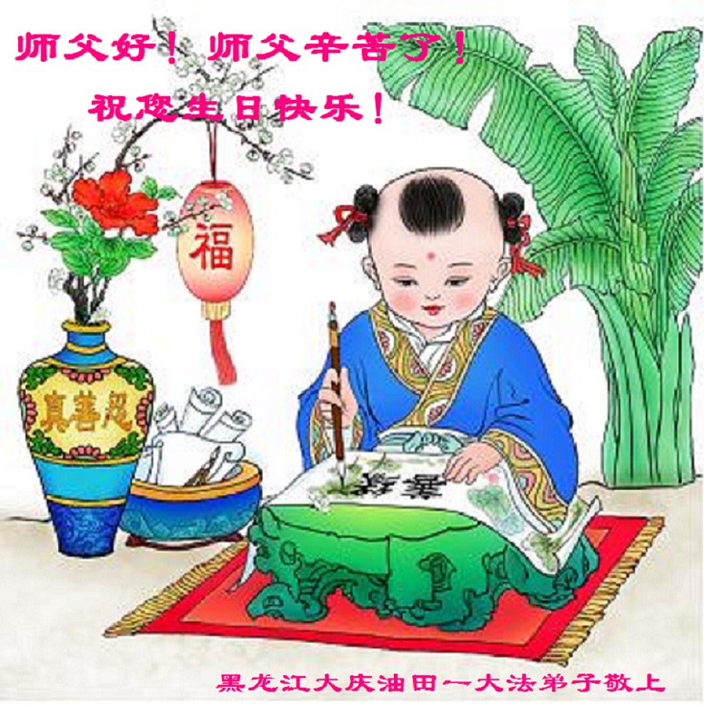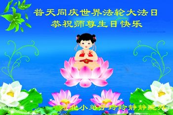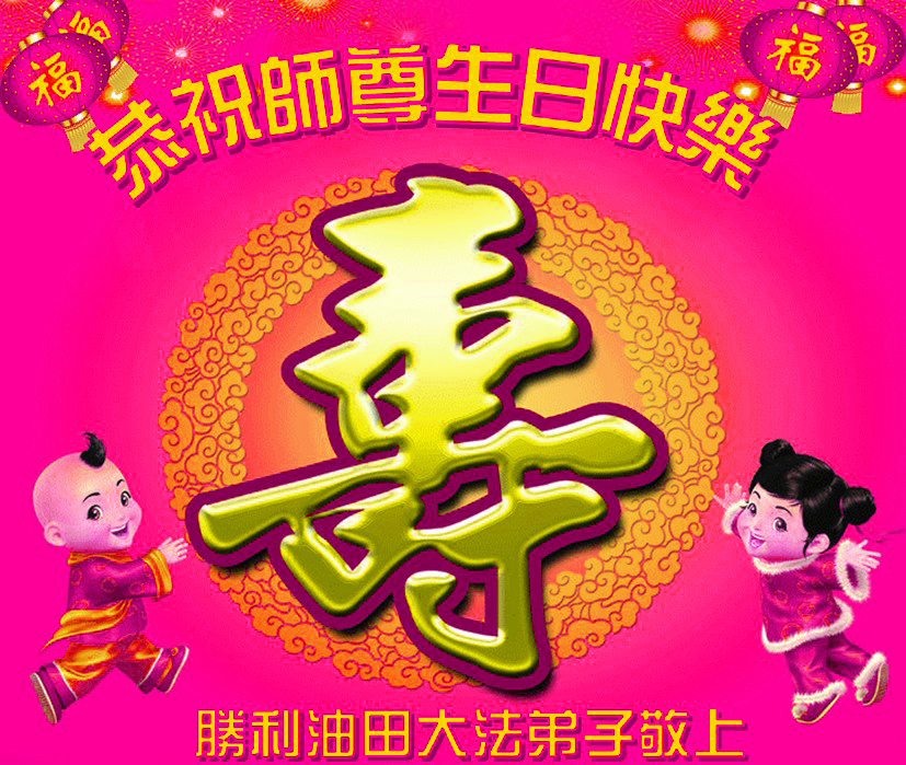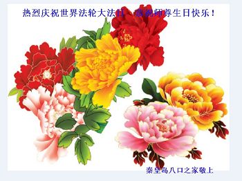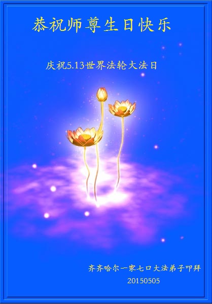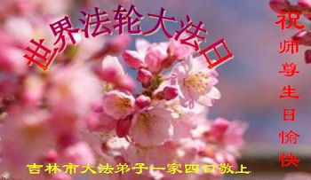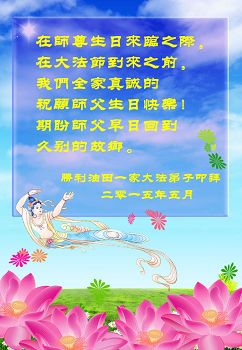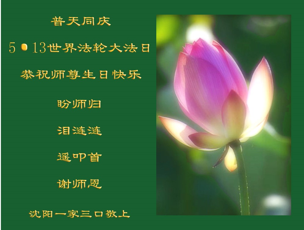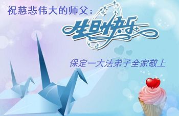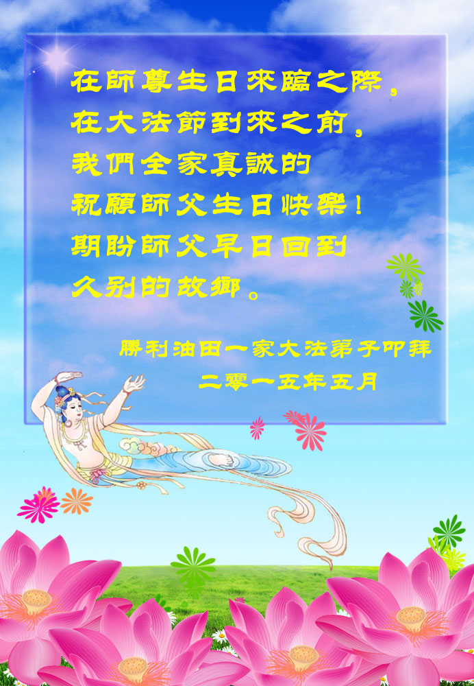 在师尊生日来临之际,在世界法轮大法日到来之前,我们全家真诚的祝愿师尊生日快乐!期盼师父早日回到久别的故乡。胜利油田一家三口大法弟子叩拜!