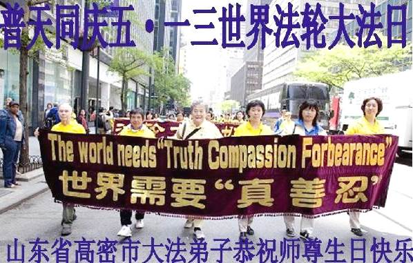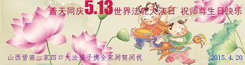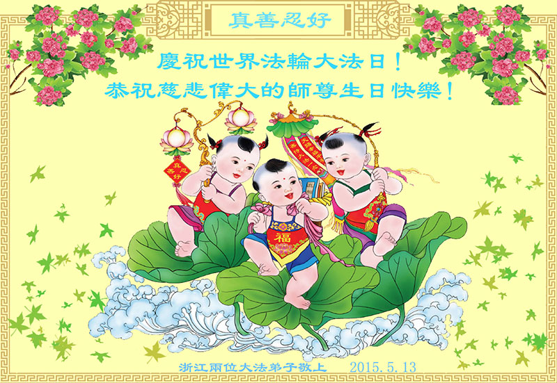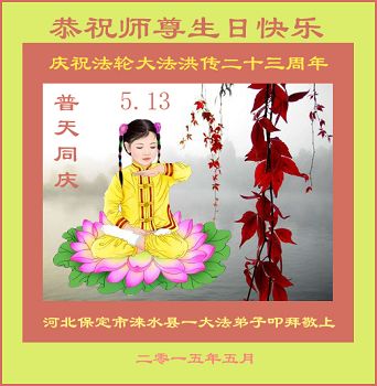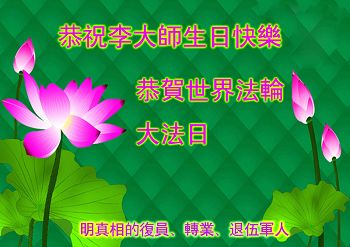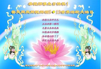 <英文版: http://en.d2s3ombhnov3zf.cloudfront.net/html/articles/2015/5/10/150165.html>明真相世人恭贺世界法轮大法日暨师尊华诞(25条)