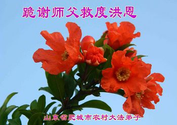 我母亲年近八旬,学炼法轮功。我们家三口都知道:“法轮大法好!真善忍好!”也都声明退出了党团队害人组织。真相护身符随身携带。真相小资料也偶尔帮着发放。今年正月初五,丈夫送儿子回单位上班,途中,车突然失控,冲向道旁沟里,“哐当”一声弹起来,在空中翻个,又“咣当”一声摔下来,当时四轮朝天,车棚已扁,玻璃全碎,丈夫和儿子是被路人从车里拽出来的,却毫发未损安然无恙。我们全家无法感激大法的救命之恩,在普天同庆大法日之际,我们全家向李大师叩首,感谢李大师的法轮大法救了我丈夫、儿子和我们全家!
