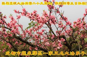 法轮大法传世二十三周年、李洪志师尊六十四岁华诞之际,广东梅州一家八位大法弟子及明白真相的家人奉上至真至诚的祝贺,感恩师尊的慈悲加持和看护!