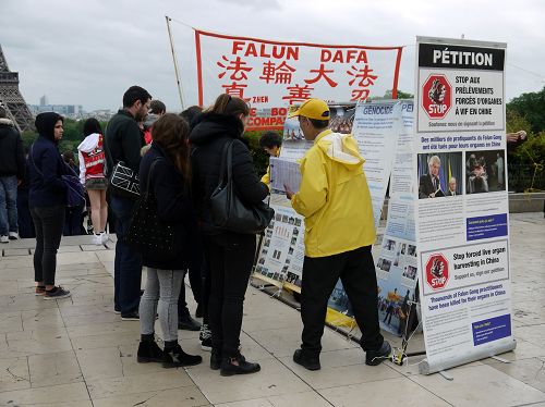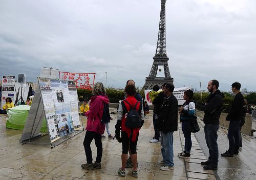 旅居巴黎的藏人扎西(化名)曾经在西藏当教师,他告诉法轮功学员,中共污蔑法轮功的造谣宣传都传到了西藏,说法轮功在天安门自焚,那些牧民信以为真,都很害怕。但很多人都不相信,尤其那些出家人、和尚,他们不相信。扎西教藏语和西藏历史,因为讲了真正的西藏历史而被迫害。来到巴黎后,认识了一位法轮功学员,使他了解到法轮功真相。今天在巴黎亲眼见到法轮功学员和平、理性地炼功,他很高兴,也证明自己当初的判断是正确的。他与法轮功学员谈了很久才离开。