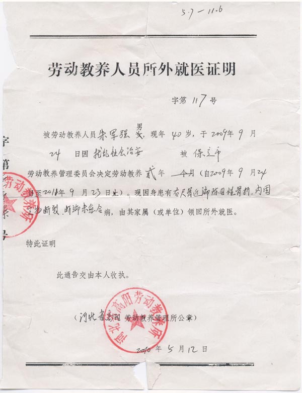 ![]() 朱军强保外就医证明 |