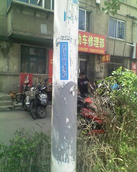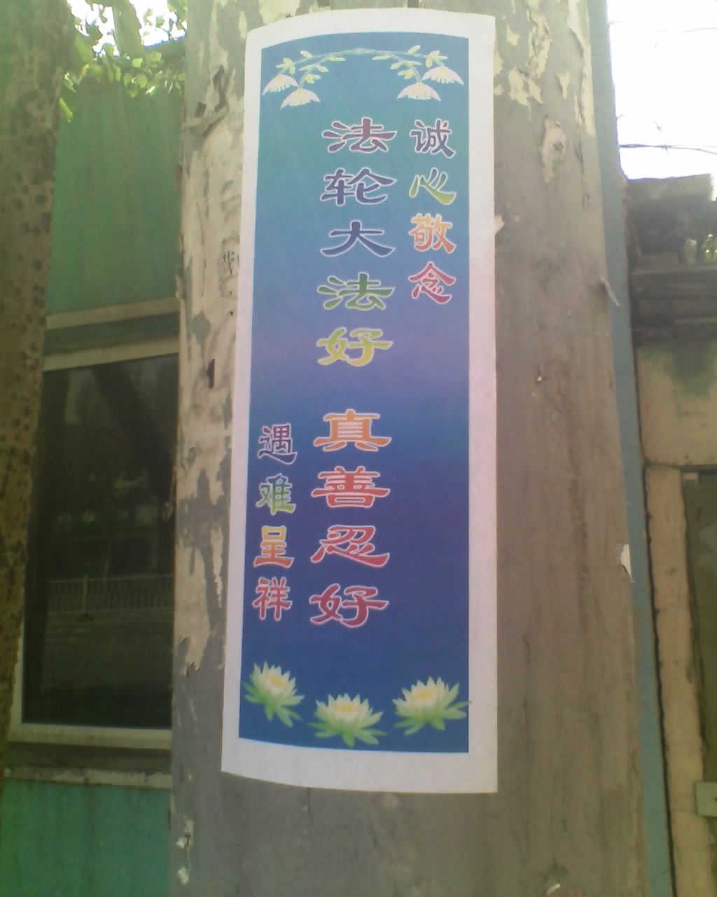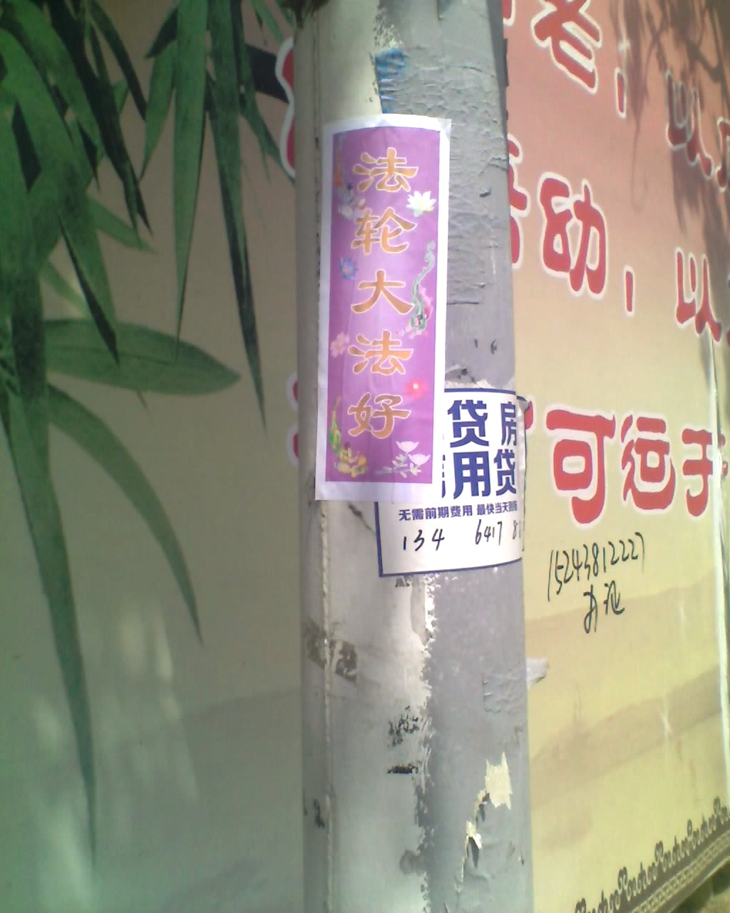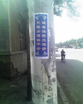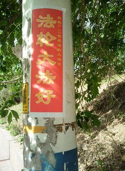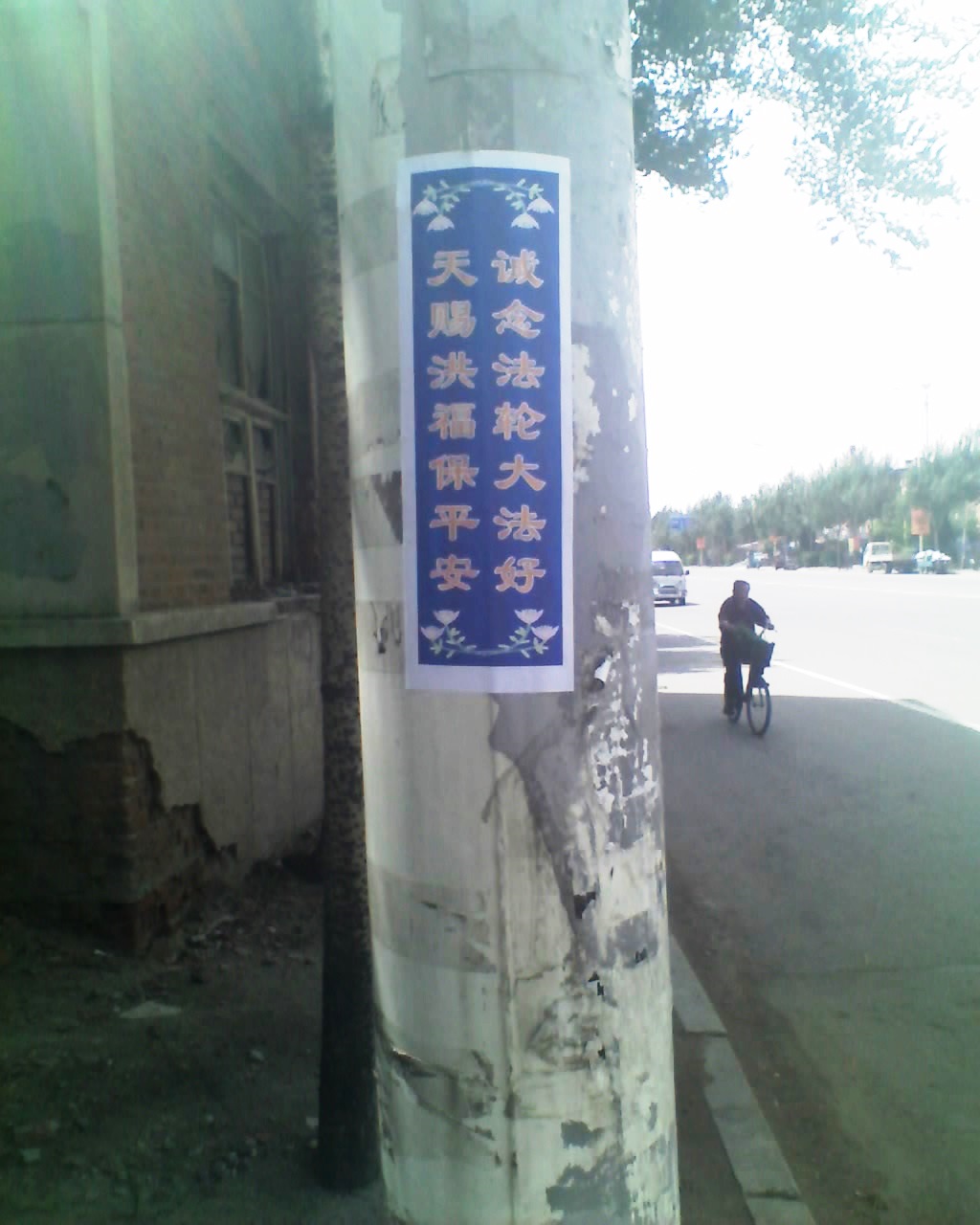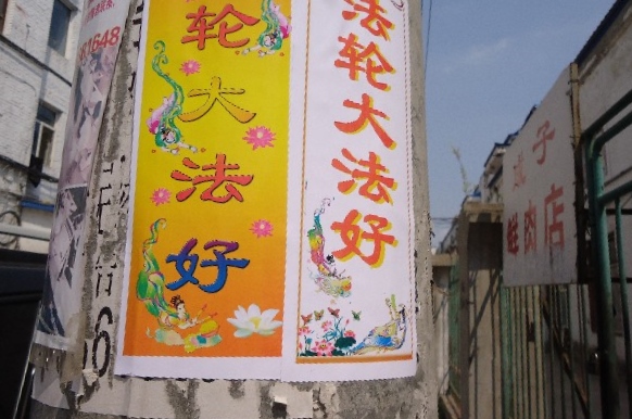 山东淄博街头可见“法轮大法好”黏贴
