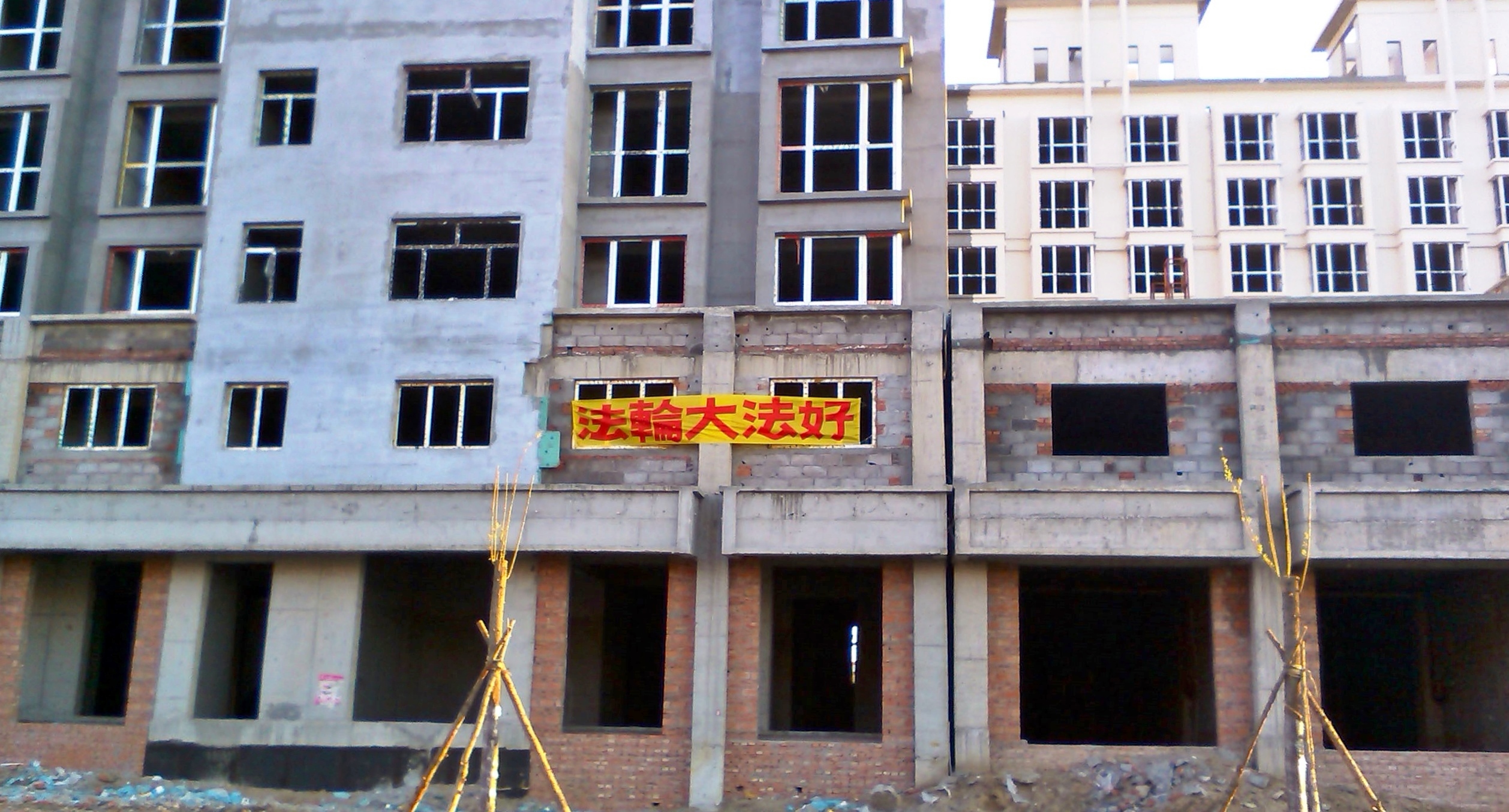 河北张家口市一居民区悬挂的大法好标语