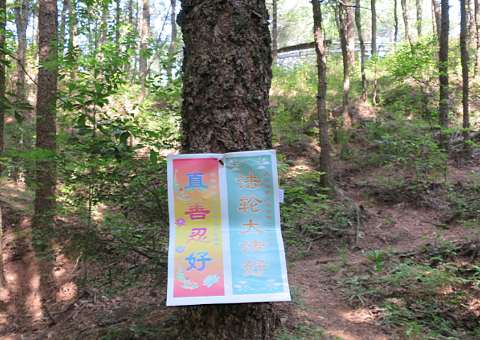2015年5月,云南昆明某公园内多处可见“法轮大法好”、“真善忍好”、“全球公审江泽民”等真相标语,以及揭露中共活摘法轮功学员器官牟取暴利罪恶的真相海报。