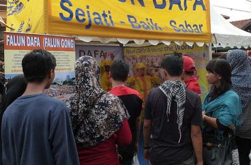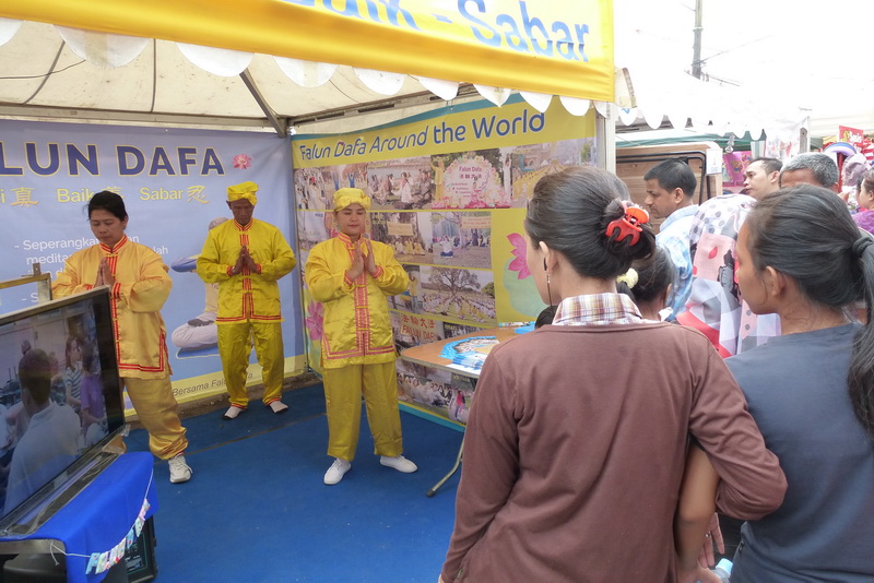 很多观众当场学习法轮功五套功法,也有很多观众了解了法轮功在中国无辜遭受迫害的真相。