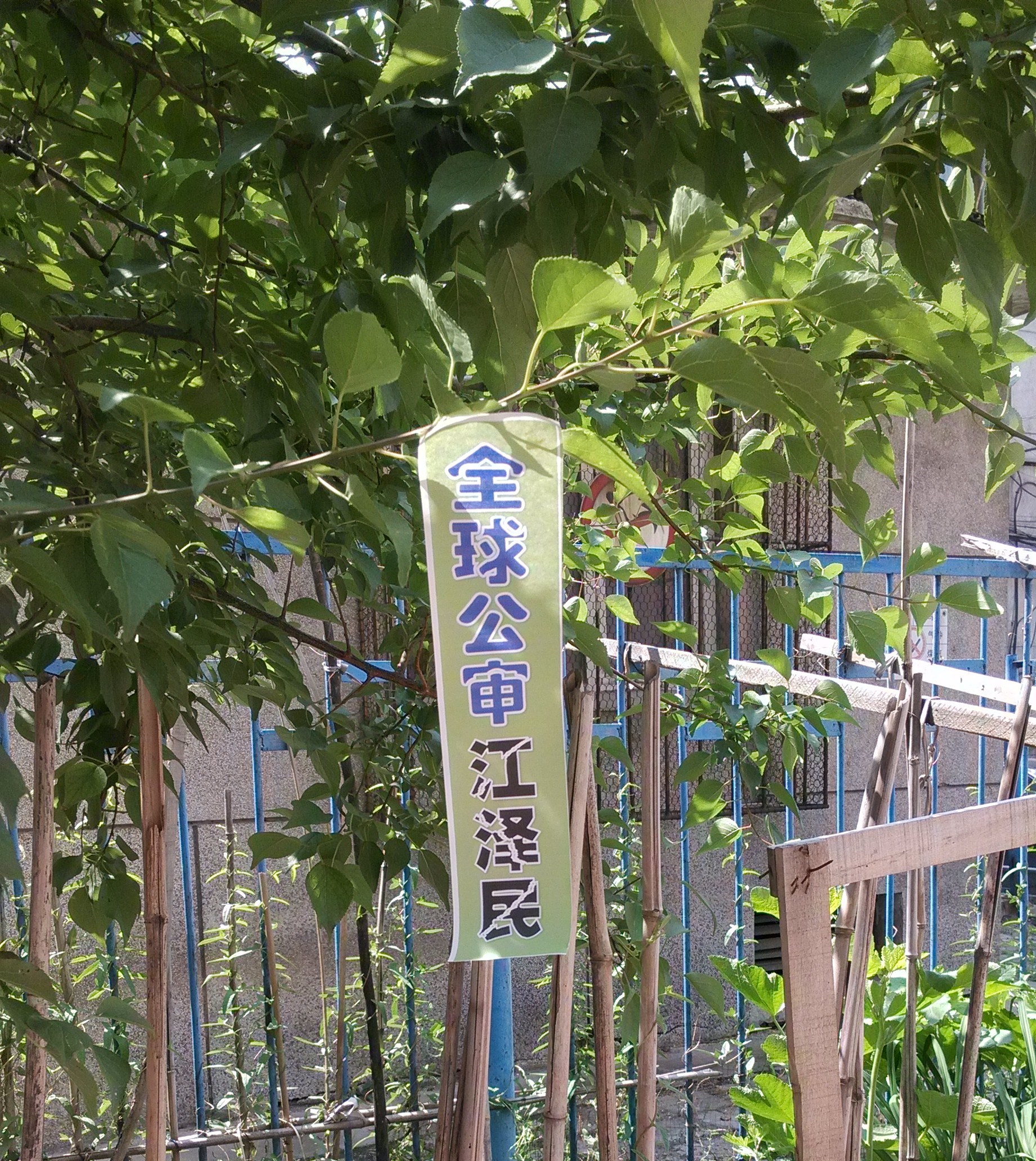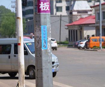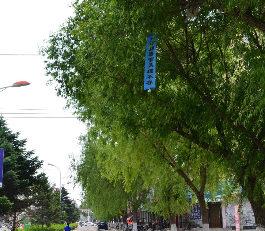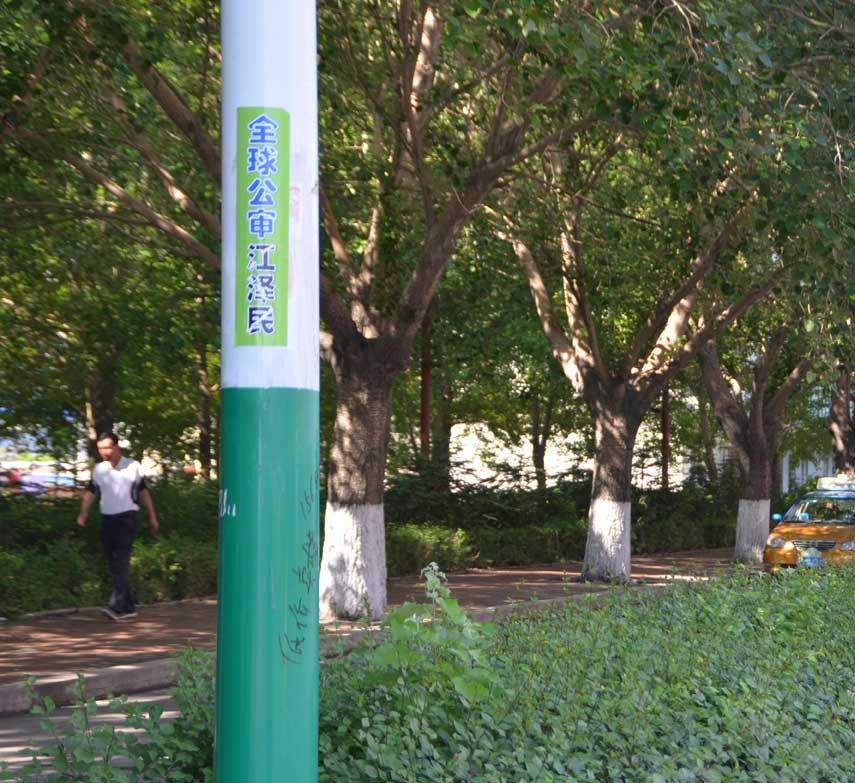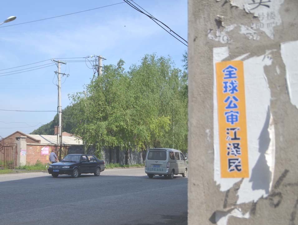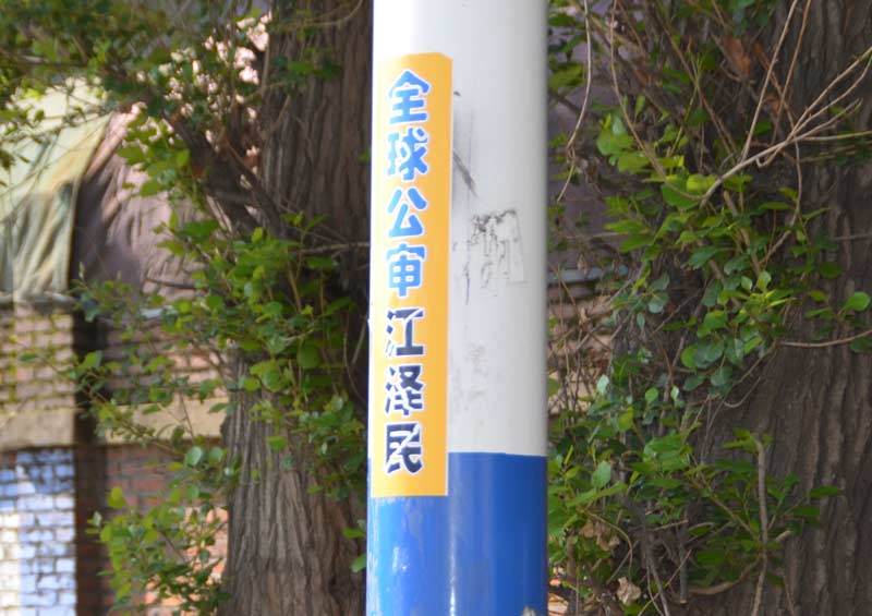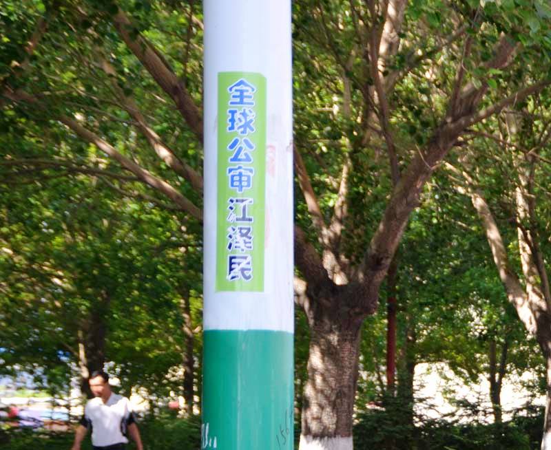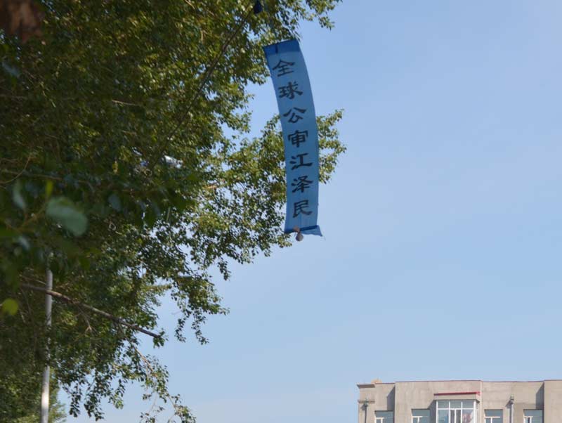 (明慧网通讯员黑龙江报道)二零一五年六月十日,在黑龙江省某地的街道、居住区多处可见“全球公审江泽民”的标语、条幅或粘贴。