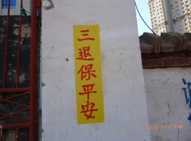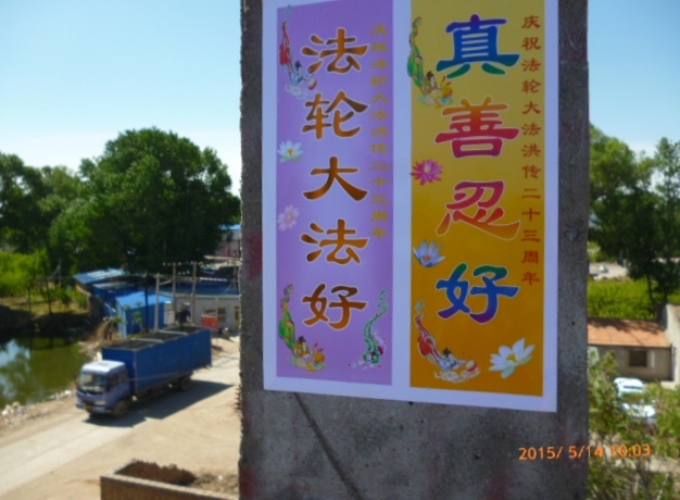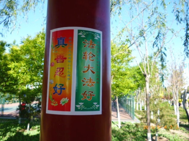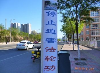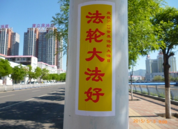 【明慧网二零一五年六月十三日】二零一五年五月中,河北省张家口地区城镇街道多处可见“法轮大法好”、“真善忍好”、“全球公审江泽民”、“三