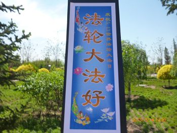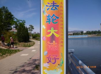 塞外山城张家口到处可见到“法轮大法好“等条幅