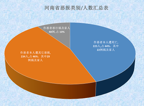 河南省参与迫害法轮功者殃及家人遭报应类别/人数汇总