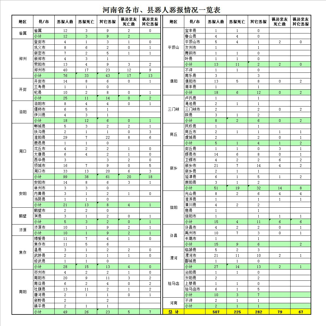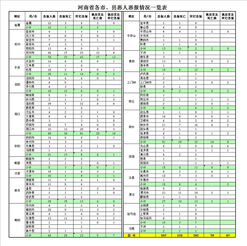 河南省恶报类别/人数汇总表