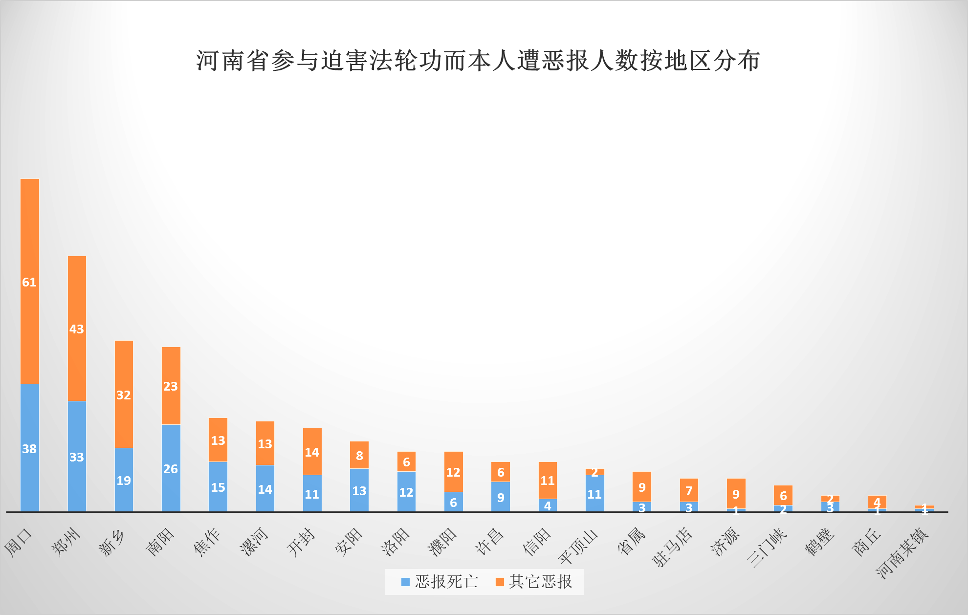 3、河南省各地区参与迫害法轮功而本人遭恶报人数按地区分布图