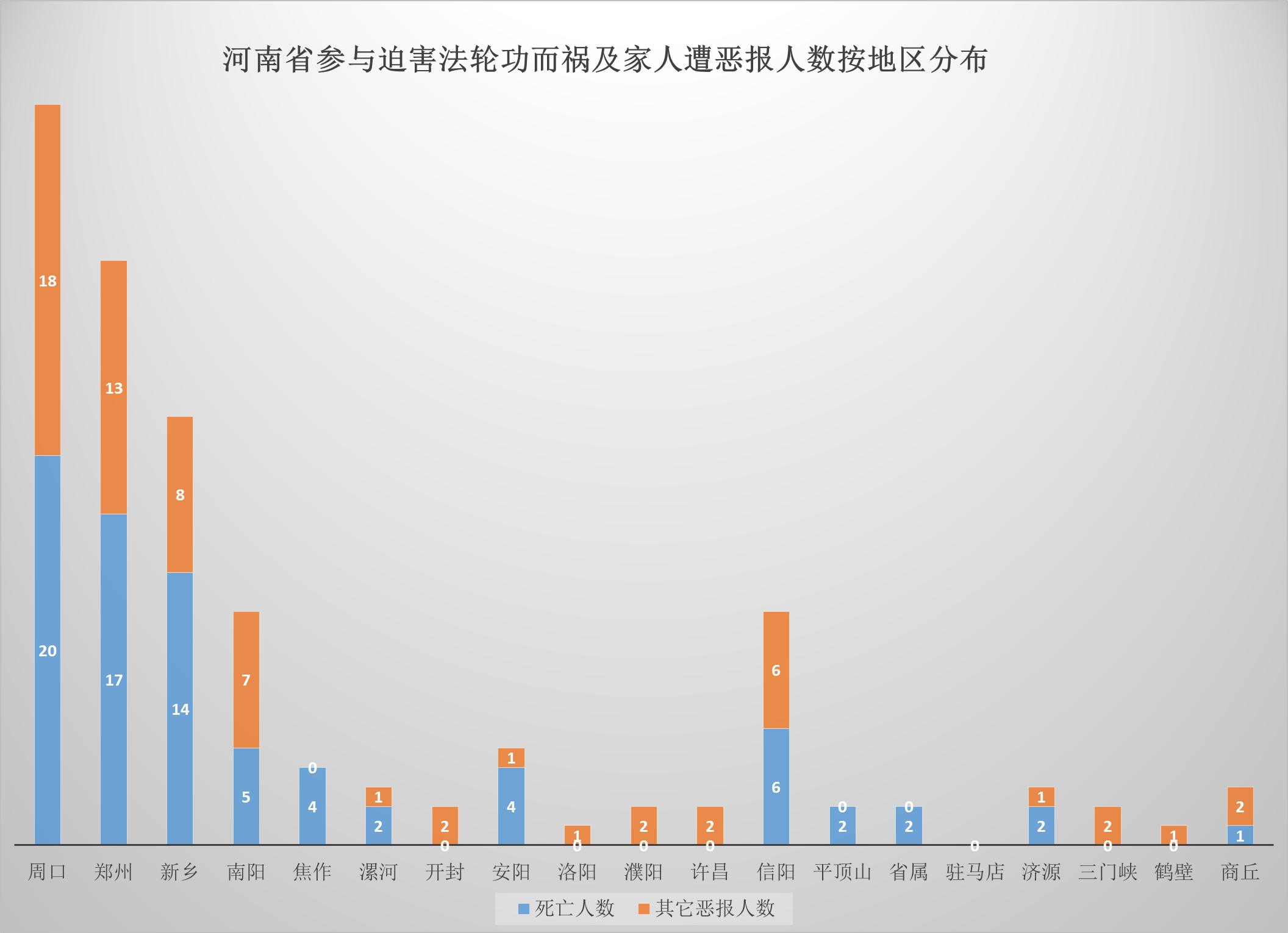 4、河南省参与迫害法轮功而祸及家人遭恶报人数按地区分布图