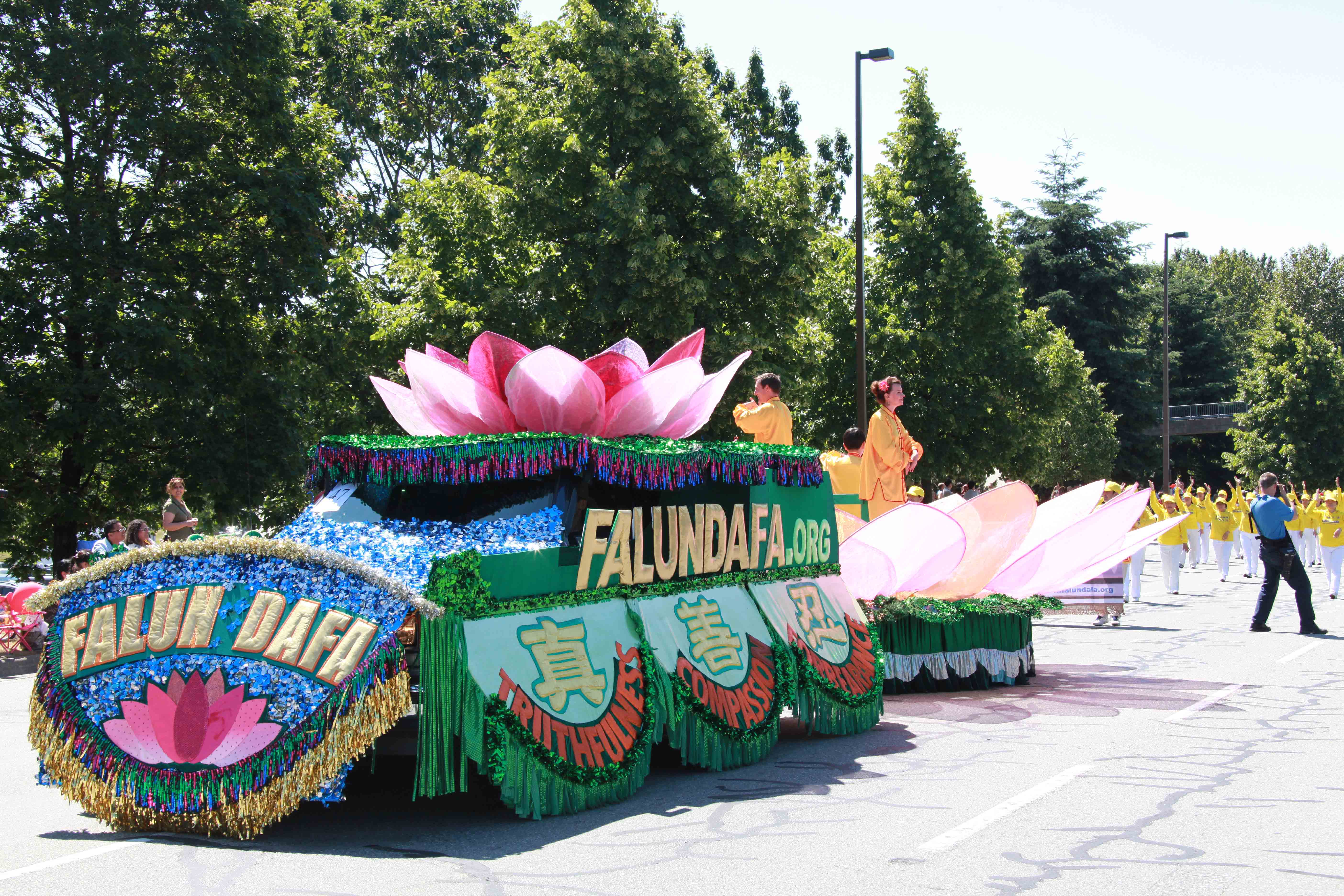 游行主持人Tim MacDonald 先生介绍说,法轮功是中国传统功法,有四套动功和一套静功。有悠久的承传历史,秉持“真善忍”的理念,可以使人身心受益,已经弘传世界近百个国家。在游行队伍中有充满能量的天国乐团,有充满活力的腰鼓队,有法轮功功法演示队,还有美丽的花车。他还特别推荐人们要访问法轮功网站,falundafa.org以了解更多的法轮功信息。