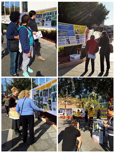 义务帮助人们退出中共组织的法轮功学员满女士在短短的三个多小时里,当场帮助四十位华人做了“三:退.”。满女士表示:我感觉今天特别容易帮助华人做“三:退.”,大家都很明白似的,很多人都很愿意退出中共邪*党-,还乐呵呵地退,有的带着孩子的,帮孩子都退了。他们都说共产党特别坏,早该淘汰了!