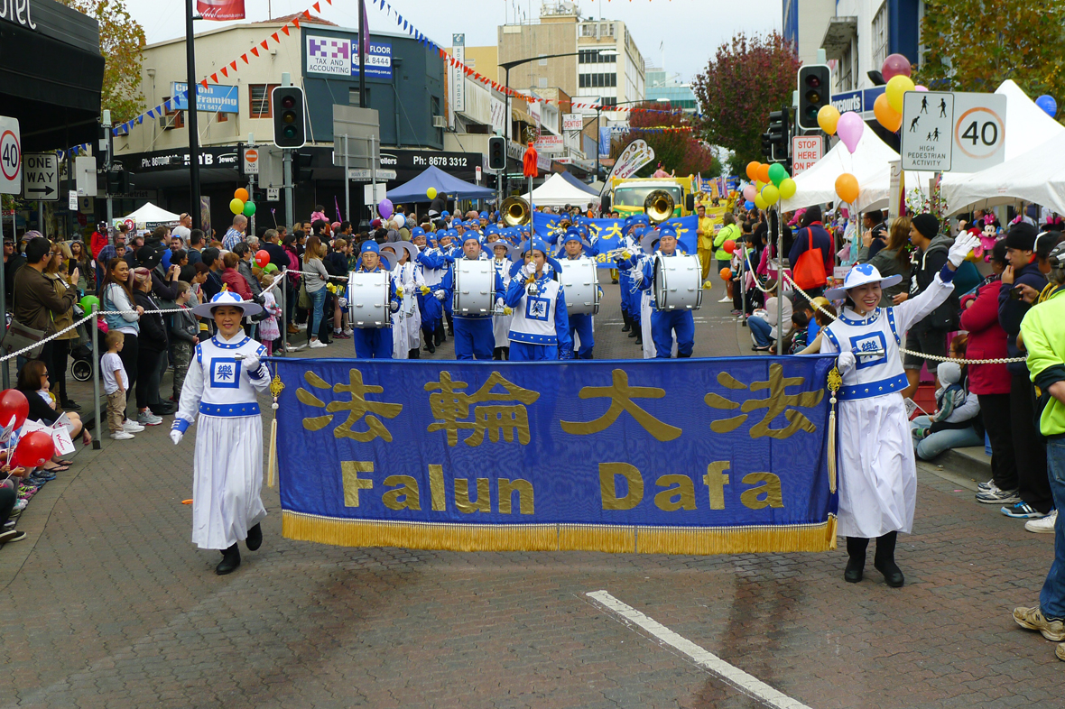 ![]() 法轮功团体的游行队伍受到黑镇民众欢迎 |