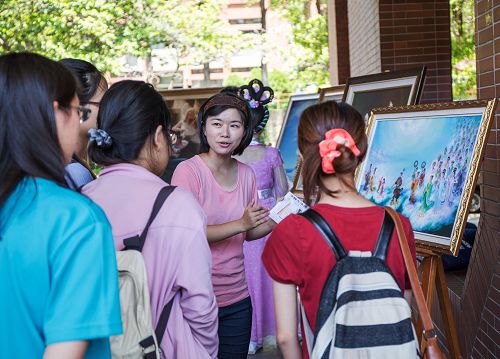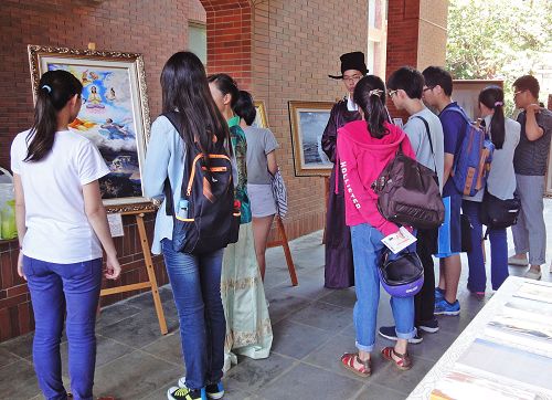 很多学生和教师前来观赏美展、体验穿着汉服的舒适高雅、学习法轮功五套功法的祥和美妙、了解修炼法轮功在中国大陆被迫害的真相。很多国际交换学生,虽然是不同肤色不同种族,一样充满兴趣,参与非常踊跃。