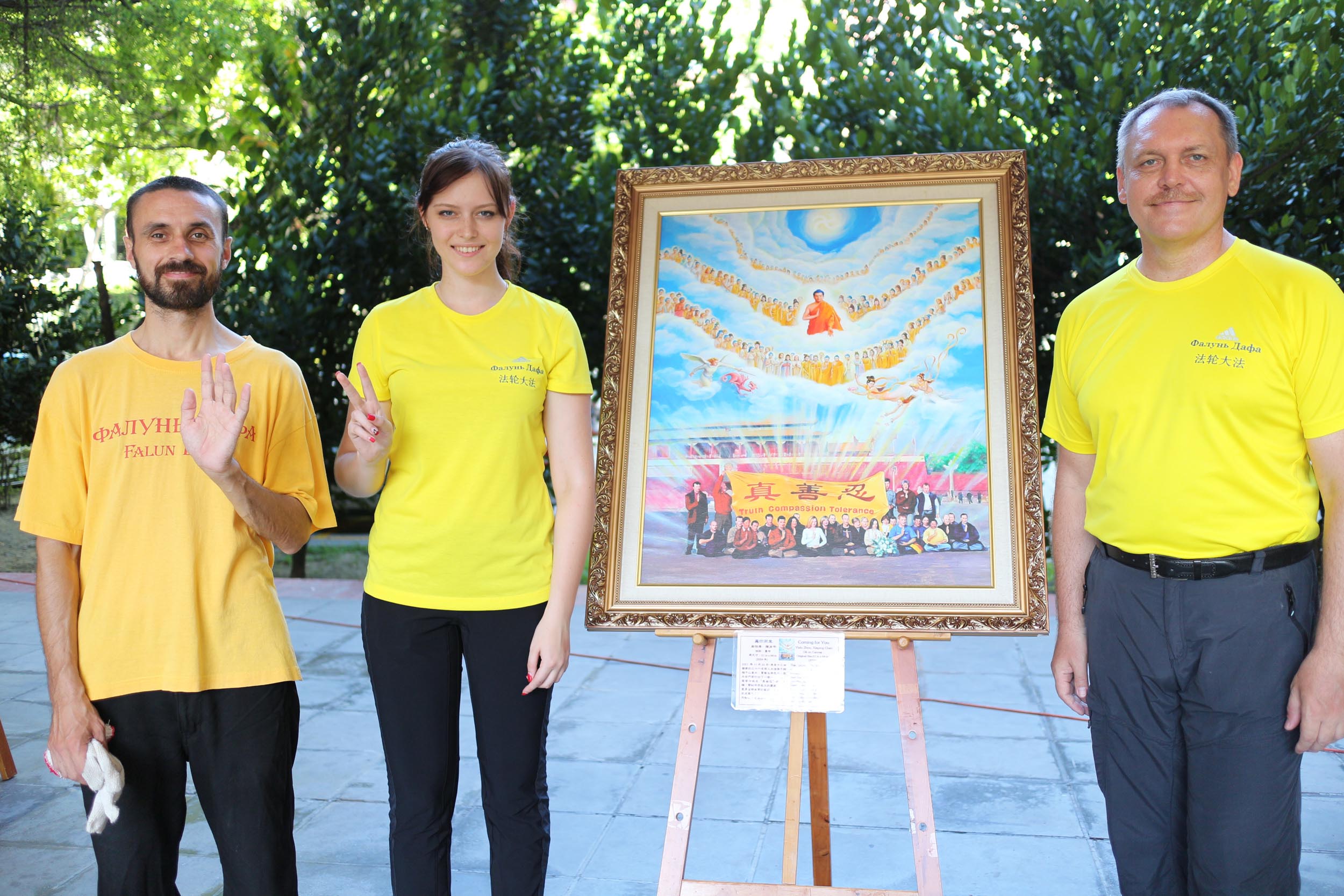 ![]() 图5:来自乌克兰的Igor、俄罗斯的Anna Kudinova和父亲Ivan Kudinov都加入了法轮大法社。 |