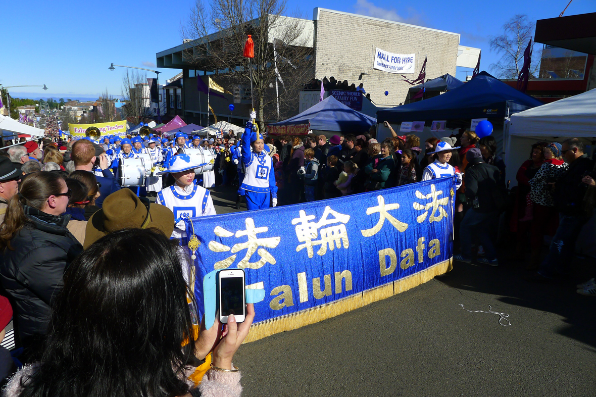 二零一五年六月二十日的澳洲蓝山卡通巴(Katoomba)的冬季奇观艺术节游行(The Winter Magic Festival),今年吸引了现场大约四万观众观看,熙熙攘攘的游行队伍和观众人群把整个游行地域的马路上下,挤得水泄不通,热闹非凡。法轮功游行队伍由天国乐团、身着古装的仙女和旗阵组成。法轮功游行队伍所到之处,观众们热烈鼓掌、挥手致意,有的人喊着:“你们的乐队真壮观!你们的游行队伍真美丽!我可以去哪里学习、修炼法轮功?”有些观众还伸出手来邀请和法轮功学员一起做一个友好的单拍手仪式,以此表示:你们真棒!了不起!