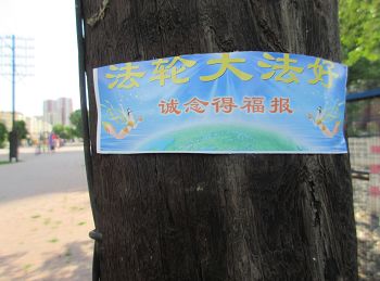 通讯员吉林报道) 二零一五年六月二十日端午节前后,在吉林市的街头巷尾都可见到“全球公审江泽民”、“法轮大法好”等真相标语。
