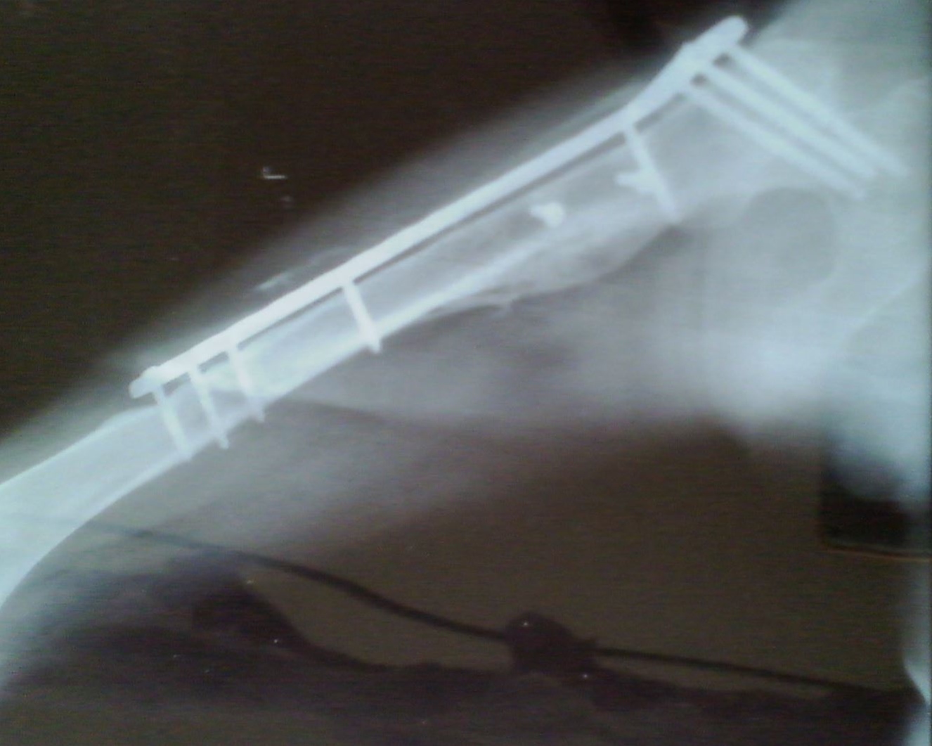 ![]() 警察非法抄家,我因害怕被抓跳楼导致大腿骨折,今年我去本地骨科医院拍的钢板的片子 |