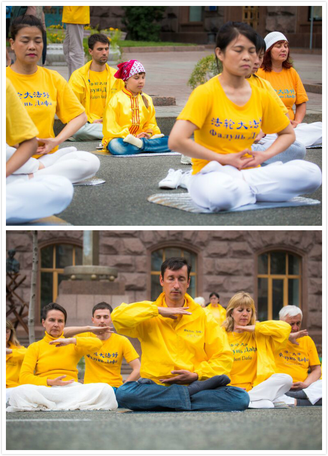 乌克兰的时局还处在动荡不安中,年轻的市民表示,在这么动乱不安的现实,法轮功学员的打坐带给人们意想不到的宁静,真的很想和他们坐在一起。