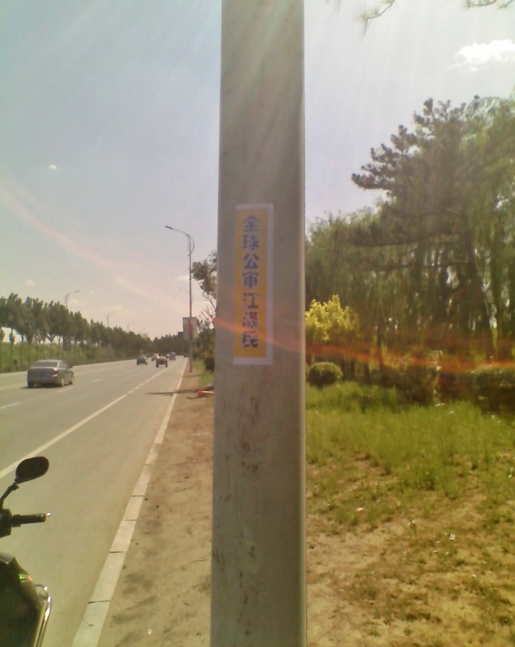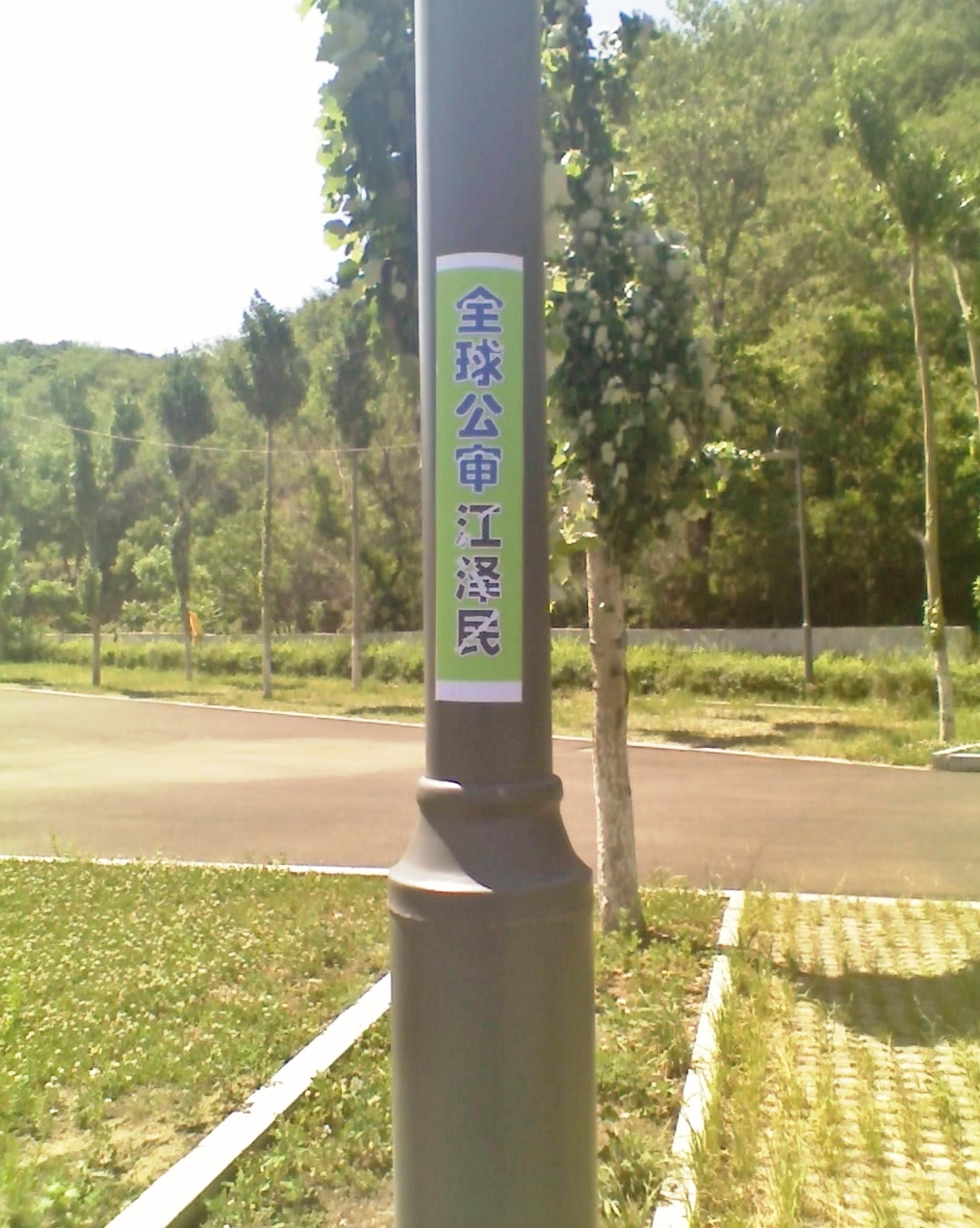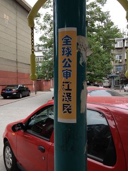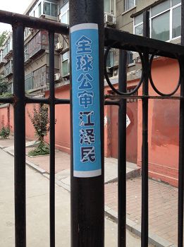 山东淄博街头巷尾可见“全球公审江泽民”标语辽北城市街道两边及楼群多处可见真相标语