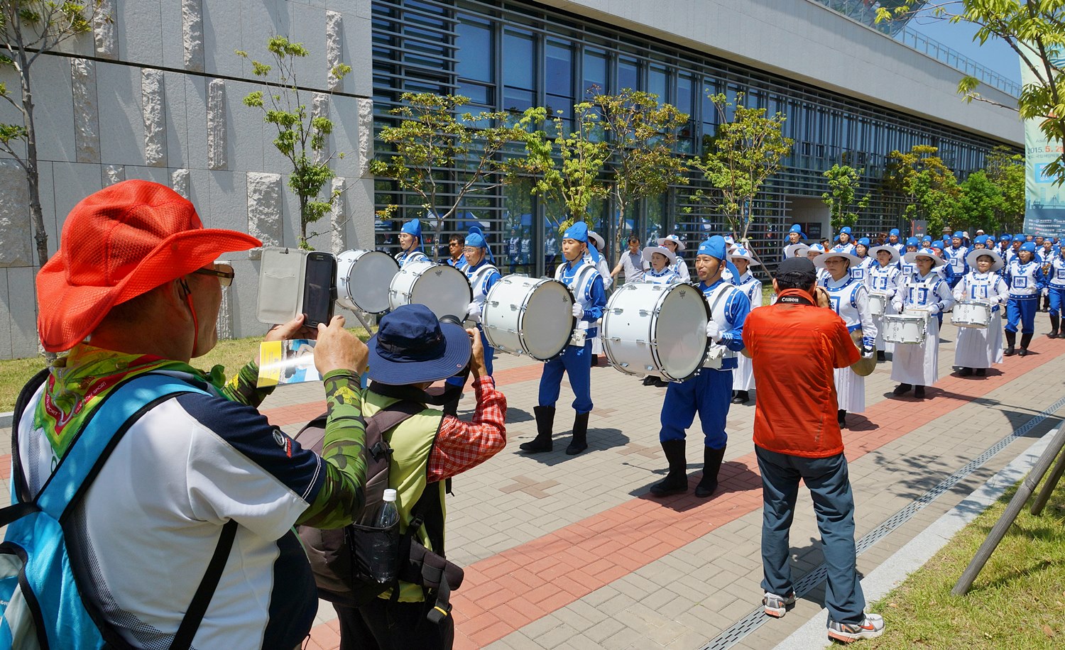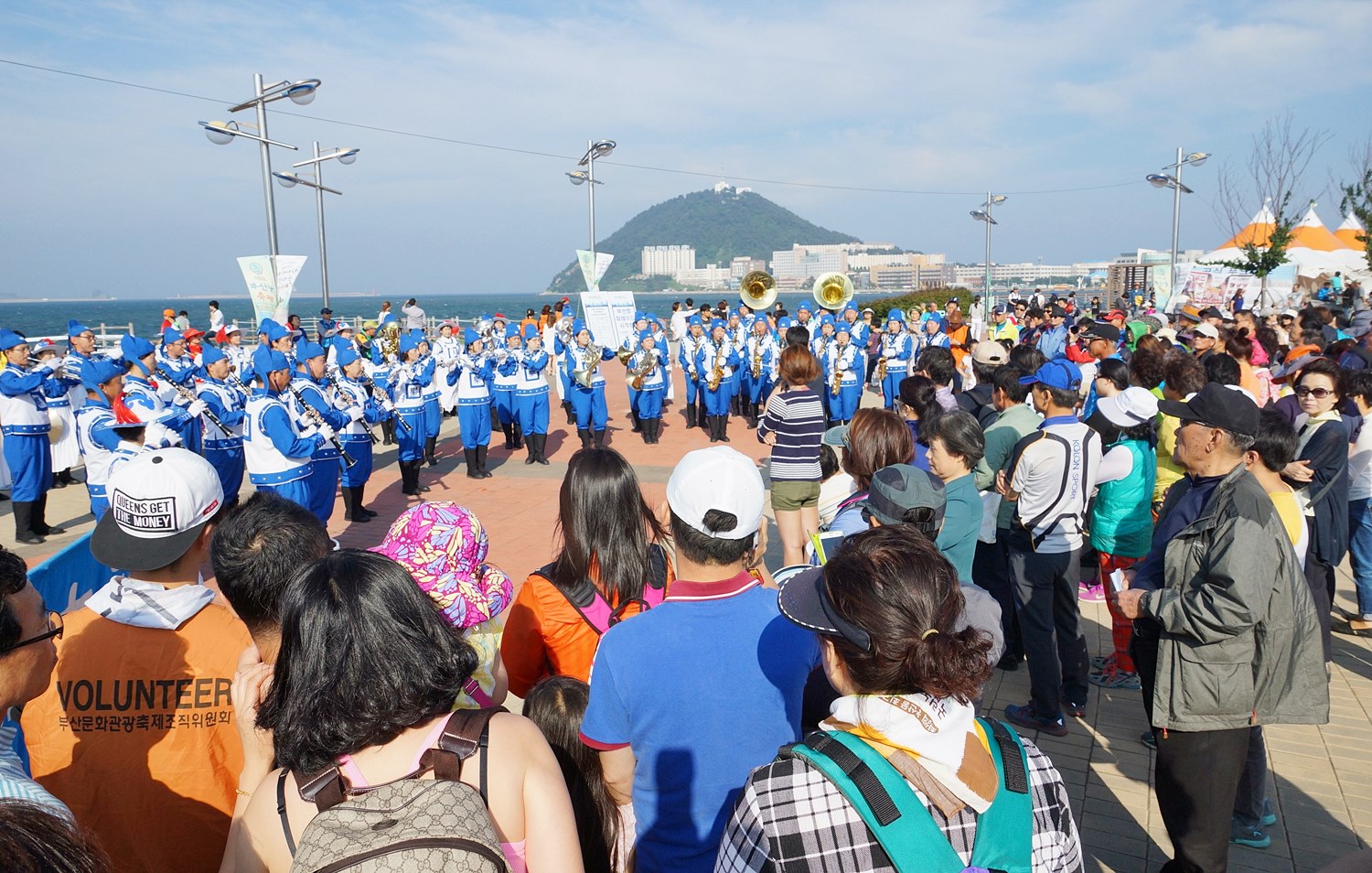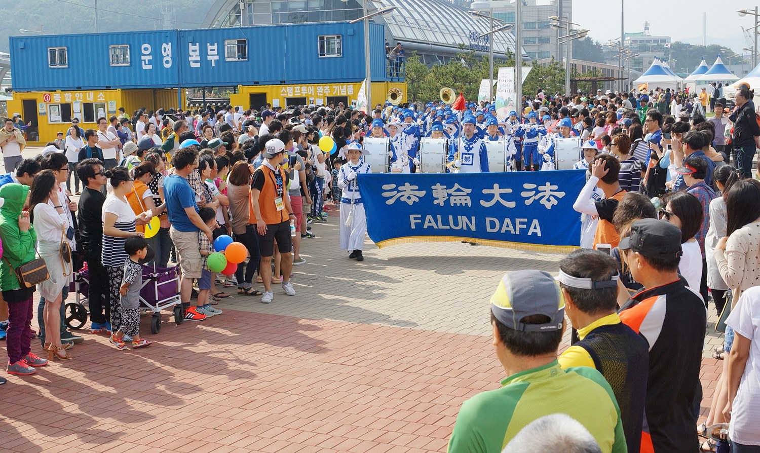 ![]() 釜山港庆典游行,天国乐团整装待发 |