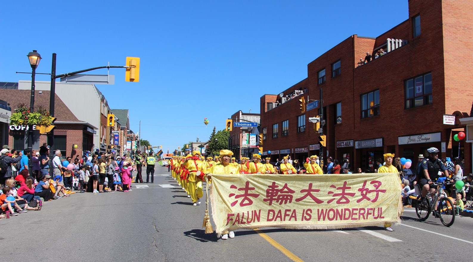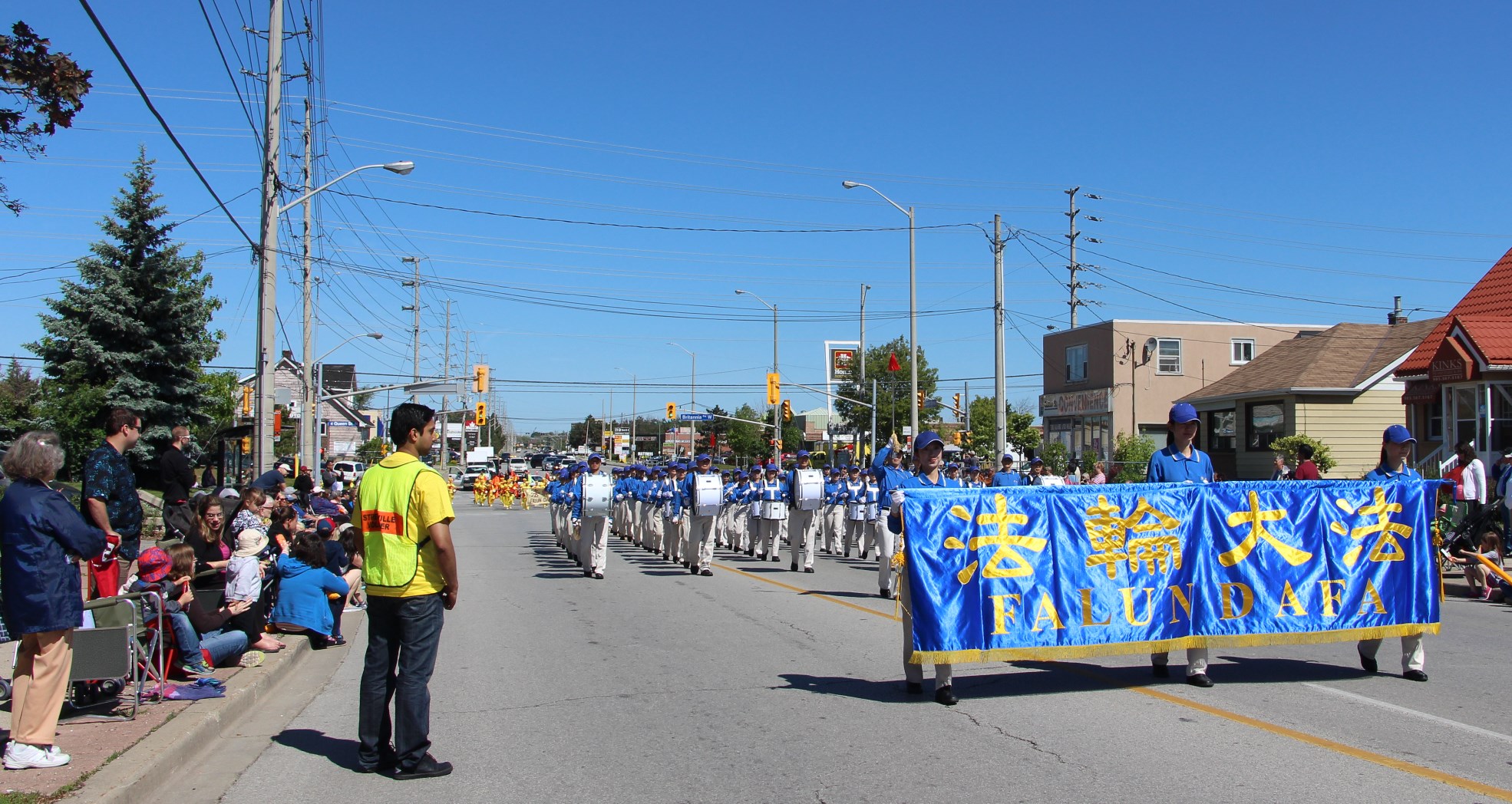 ![]() 多伦多法轮功学员组成的腰鼓队参加密西沙加市第四十三届面包及蜂蜜丰收节游行(Bread & Honey Festival)。 |