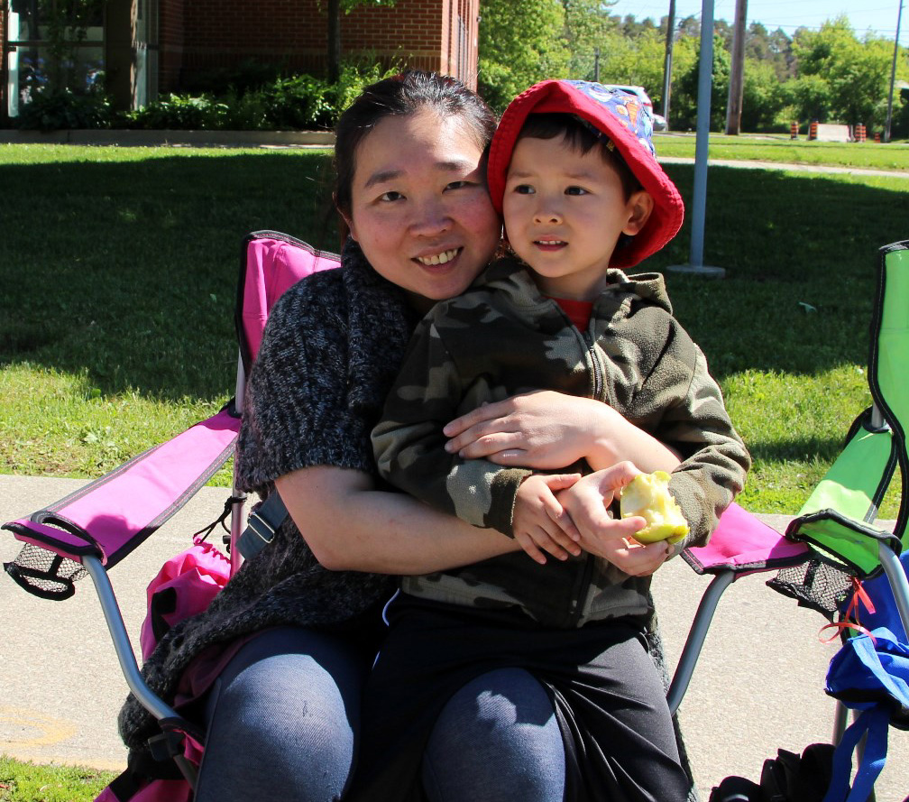 密市居民Emily(右)说:“很庆幸每年都看到‘法轮大法’的队伍,真希望他们在面前多呆点时间,我们能多欣赏一下,真的让人振奋,期盼他们年年来。谢谢!”
