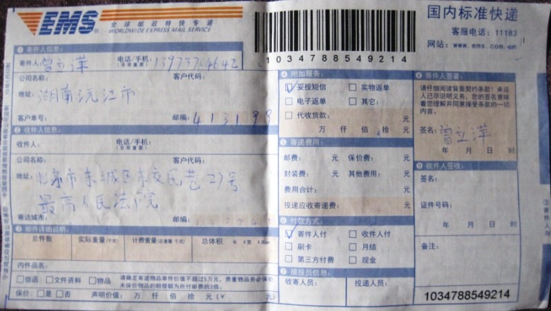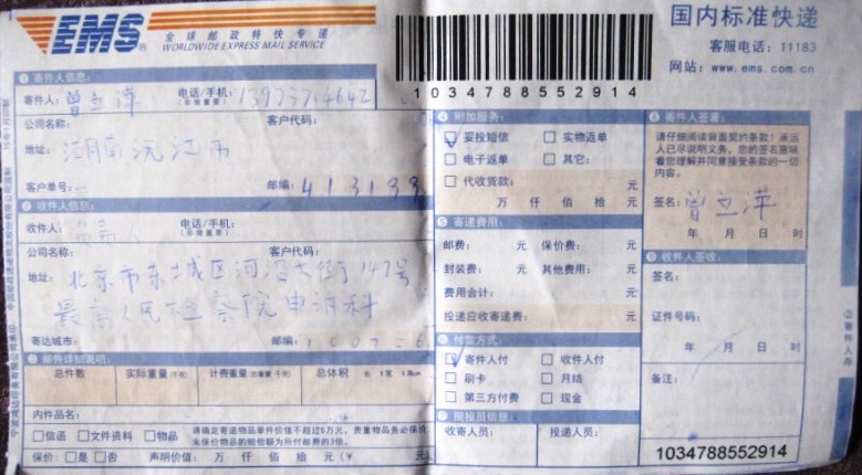 二零零零年四月六日,我再和沅江十二个学员坐火车进京护法,我们中途被火车乘警与沅江公安合谋拦截,并被非法劫持回沅江公安局关禁闭,之后又送看守所非法关押迫害一个月,勒索家属三千元现金才放人(无收条)。又一次对我家进行了非法抄家。