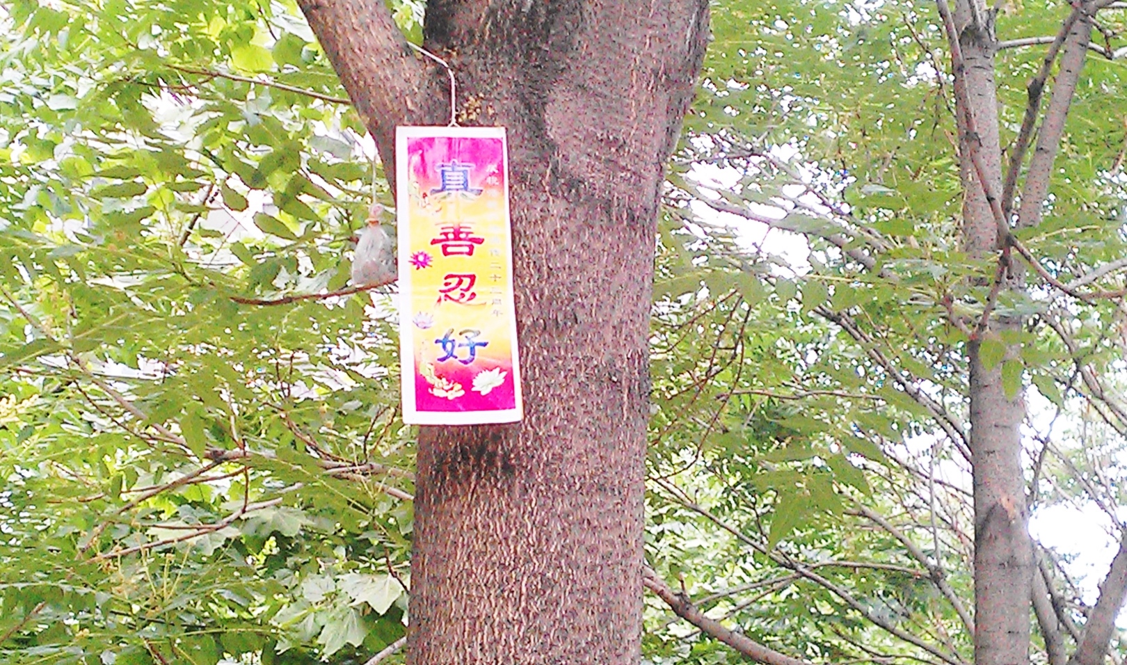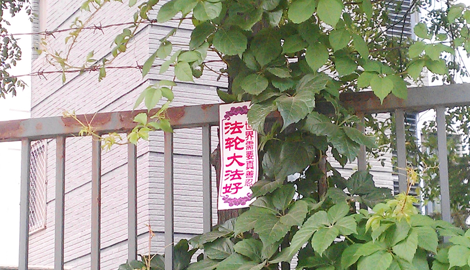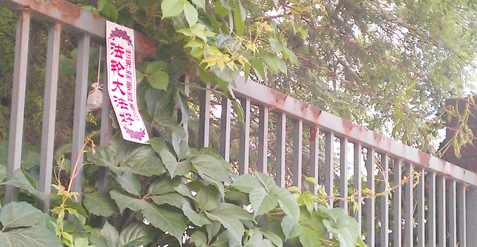 塞外山城张家口到处可见到“法轮大法好“等条幅