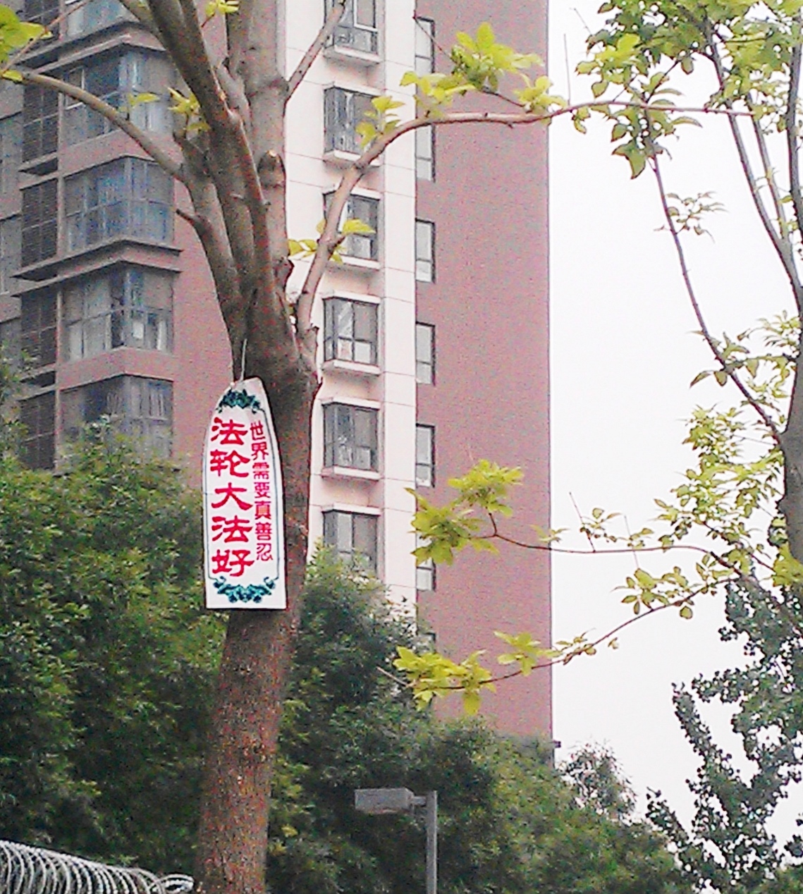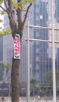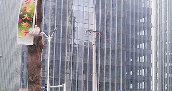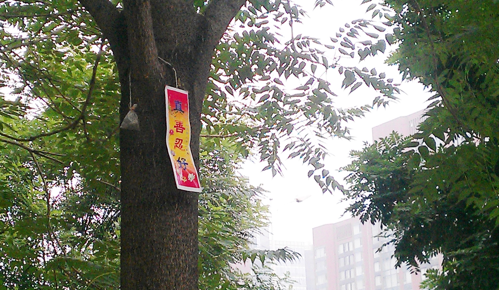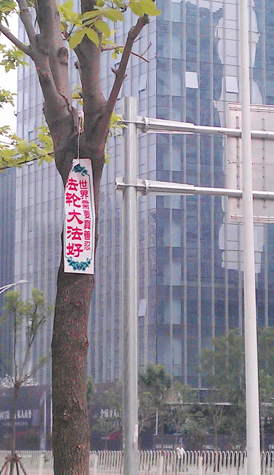 塞外山城张家口到处可见到“法轮大法好“等条幅