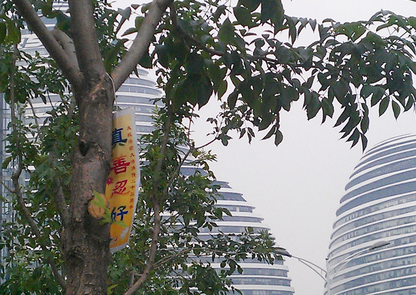 【明慧网二零一五年六月八日】二零一五年六月,在北京城区路边多处可见“法轮大法好”、“真善忍好”等标语。
