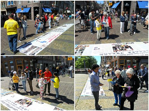 荷兰民众听闻真相后,纷纷签名谴责中共,要求立刻停止迫害法轮功信仰。居民踊跃的签名很快就把带去的表格签完,法轮功学员们又去复印一些表格还是不够用,明白真相的居民很快就签完。