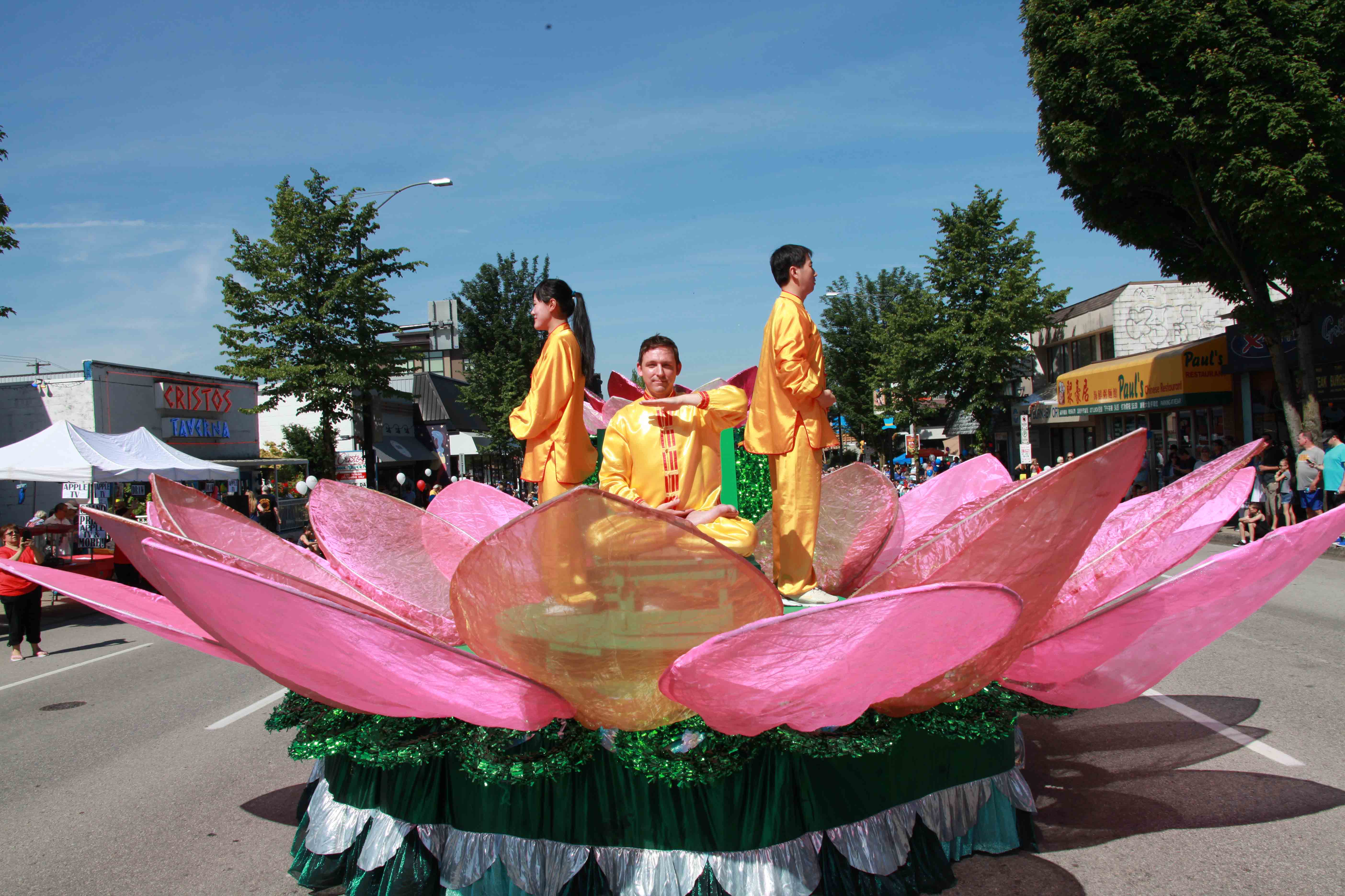 法轮功学员的游行队伍包括天国乐团、“真善忍”花车、腰鼓队、法轮功功法演示队。一路走来,受到沿途民众热烈欢迎。本拿比有大批华人居住,很多华人拍摄法轮功学员的游行队伍。还有华人赞叹“真好看哪”,“法轮大法好,法轮大法好,你看见了吗?”