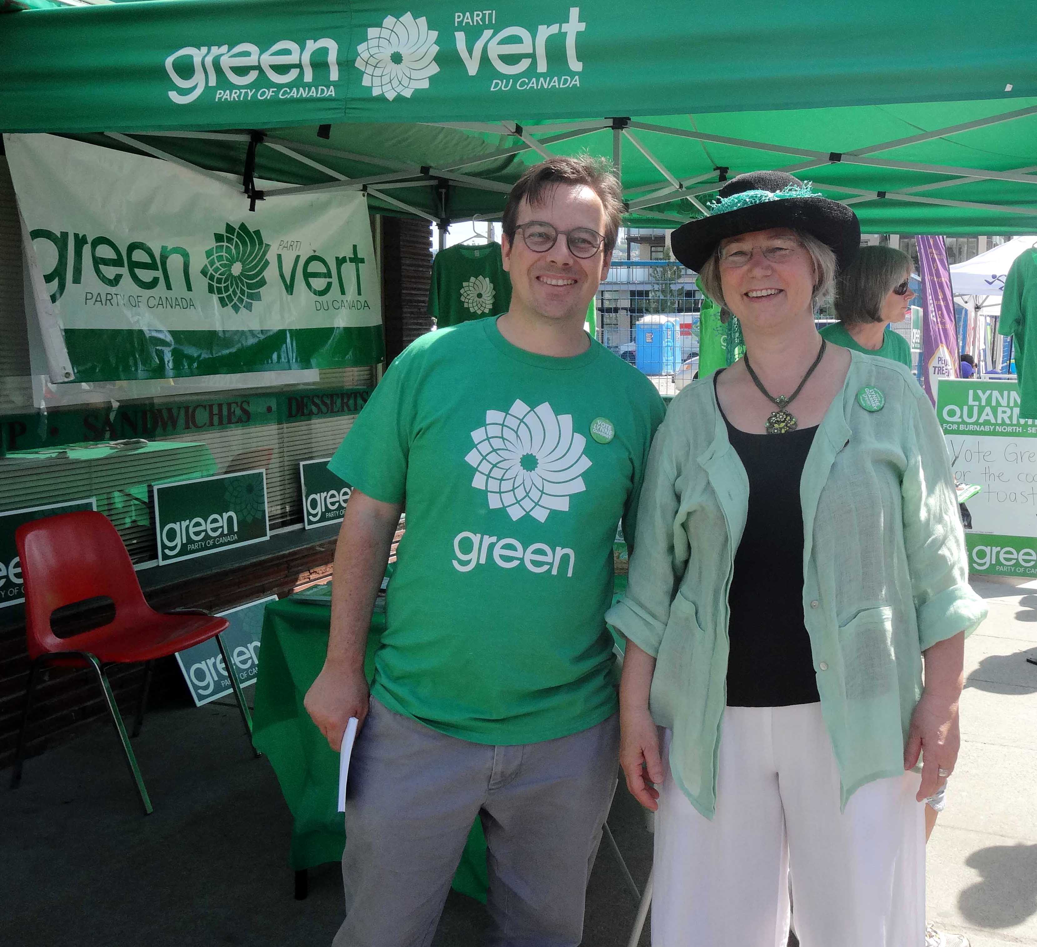 ![]() 图6:Lynne Quarmby 女士是绿党北本拿比国会议员候选人(右),Tyler Russell 先生是现代亚洲艺术温哥华国际中心的执行总监(左)。 |