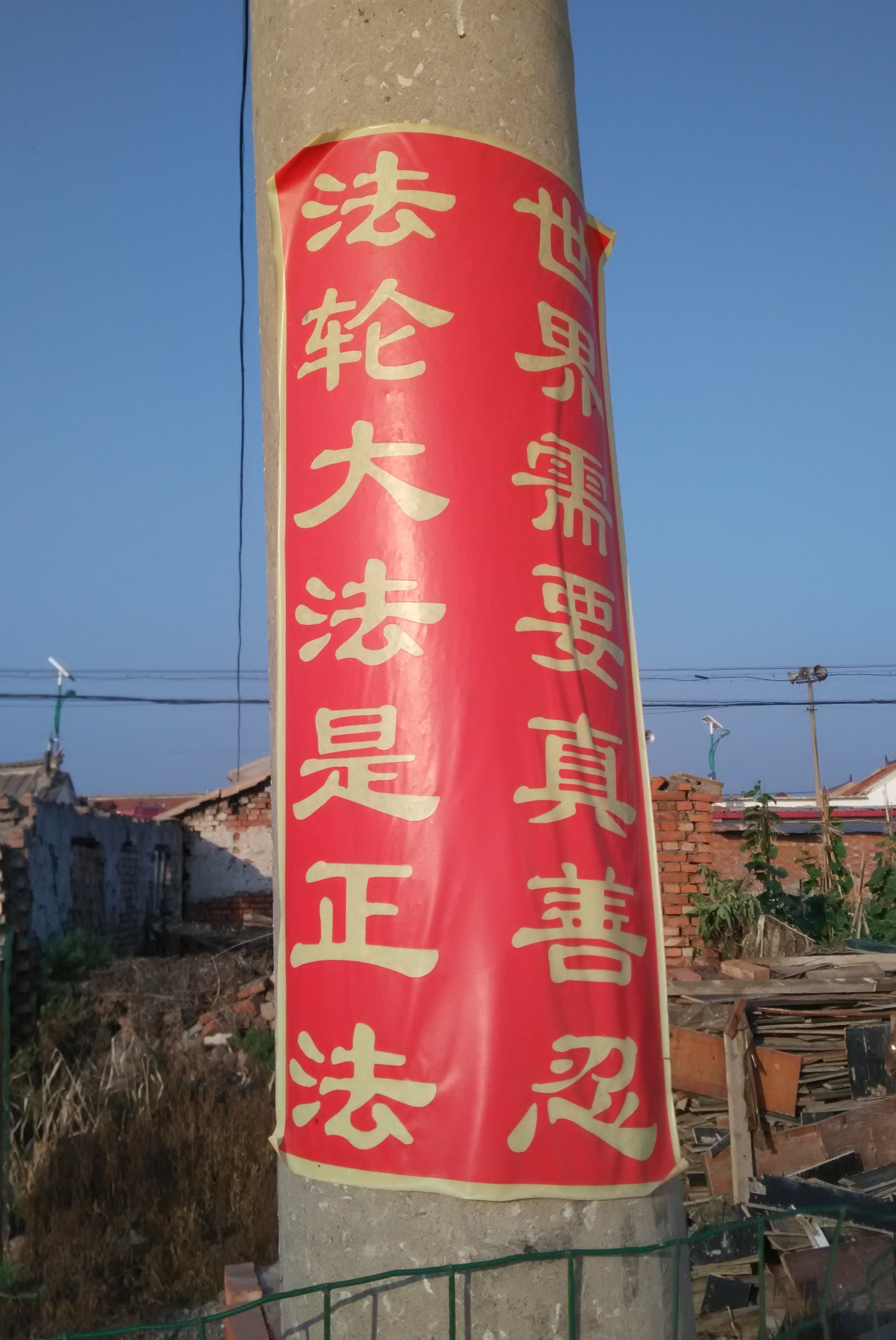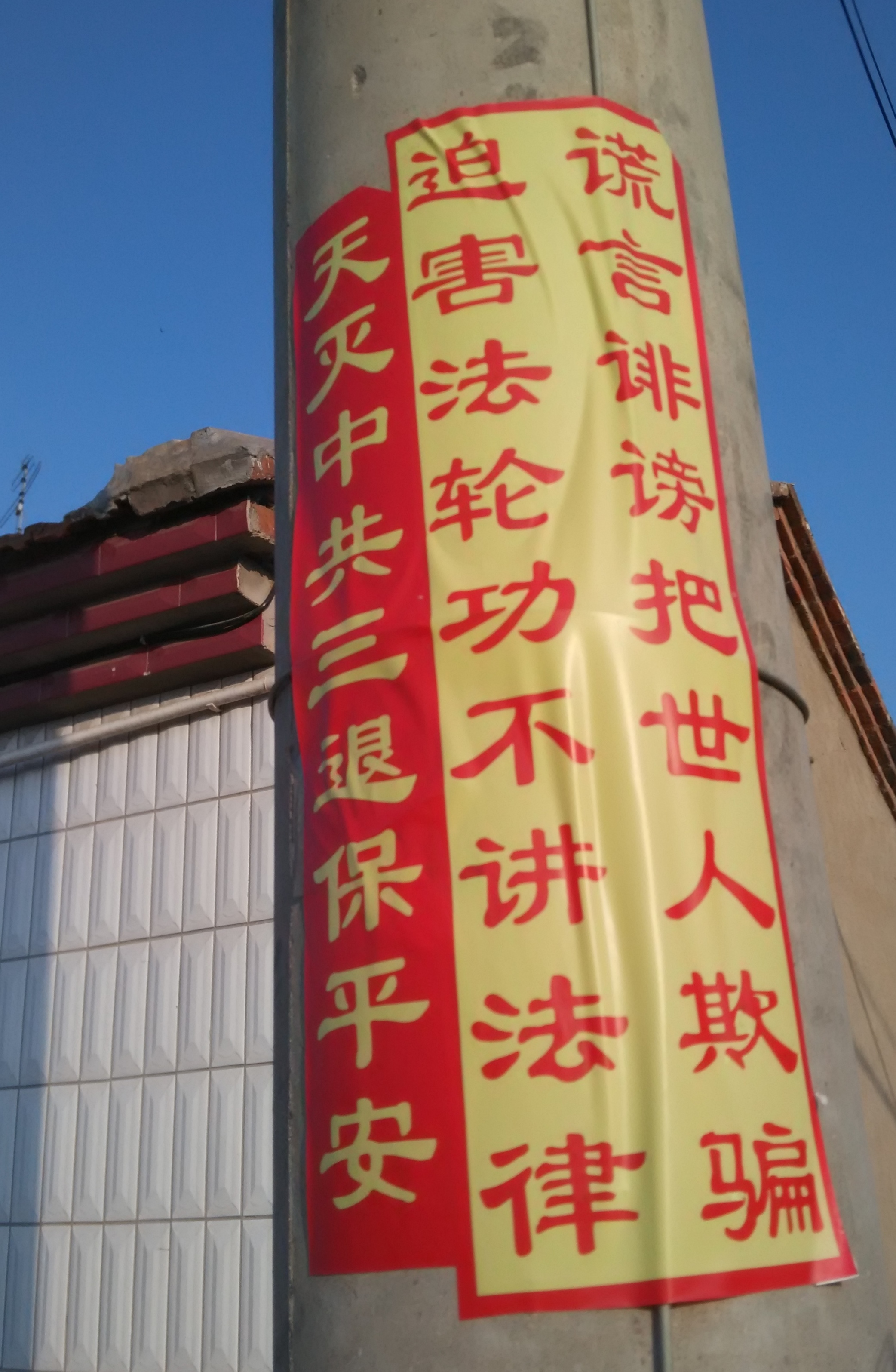 宁河县大街小巷都能见到“法轮大法是正法”、“天灭中共三:退.保平安”等真相标语。