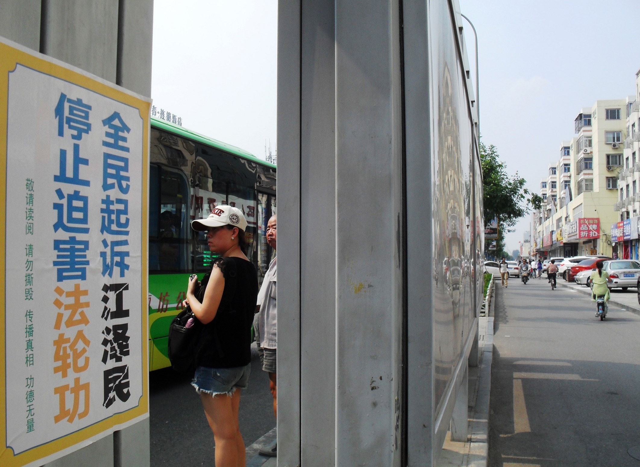 【明慧网二零一五年七月十一日】在河北省廊坊市的主要街道、十字路口、车站、停车场等处,人们可以见到“全民起诉江泽民,停止