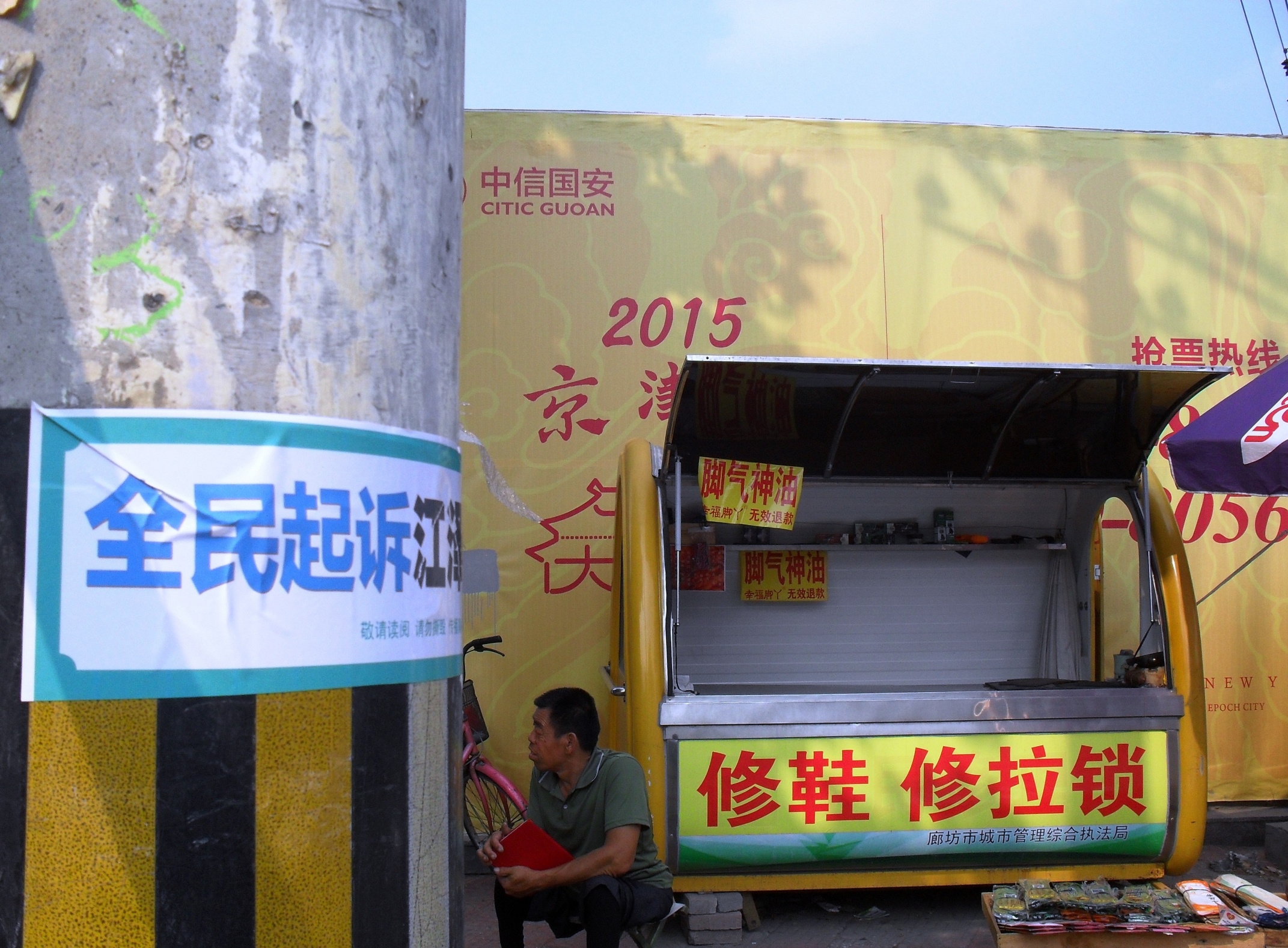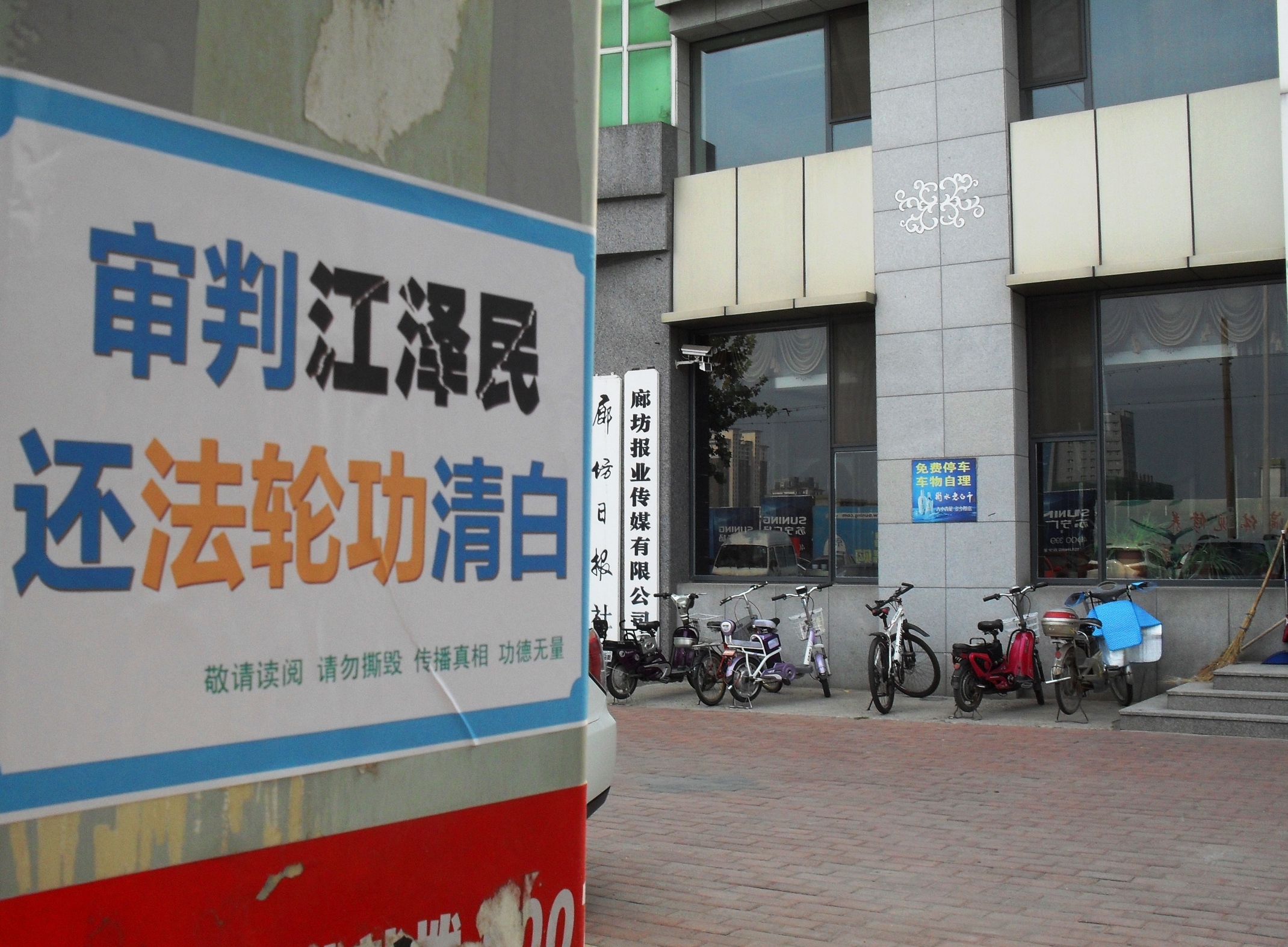 河北廊坊大街小巷出现“全球公审江泽民”(图)