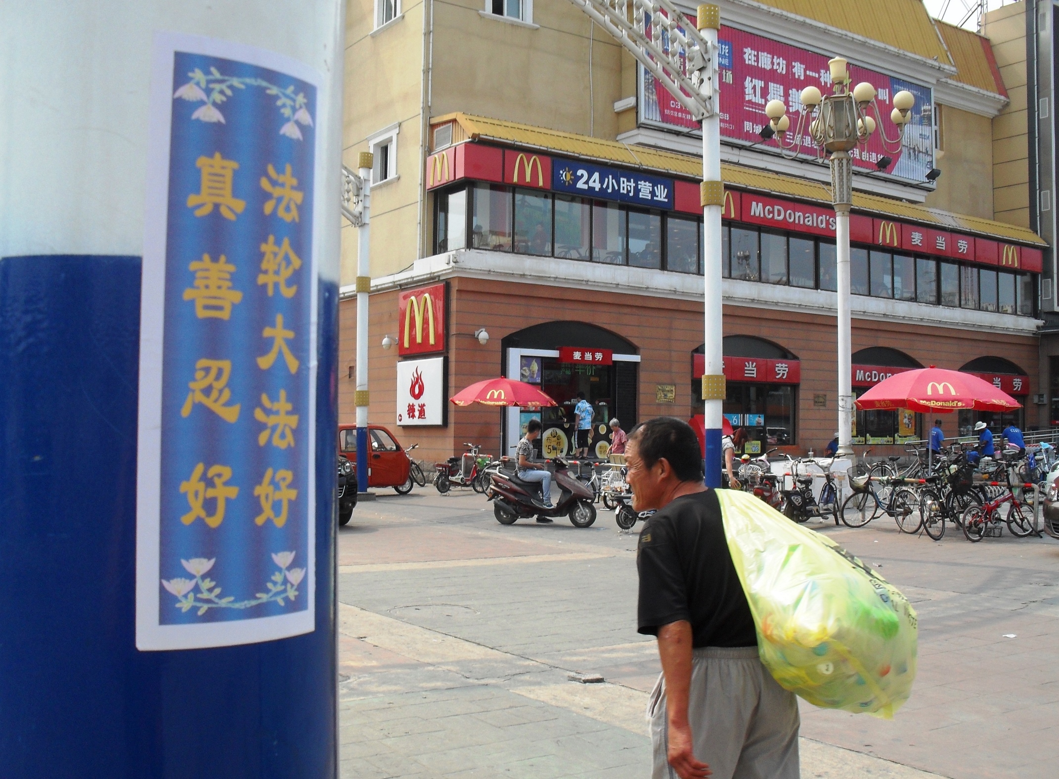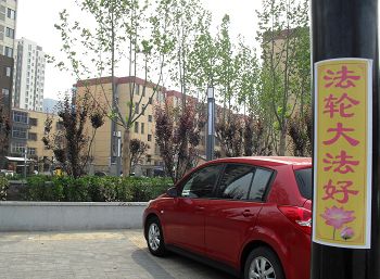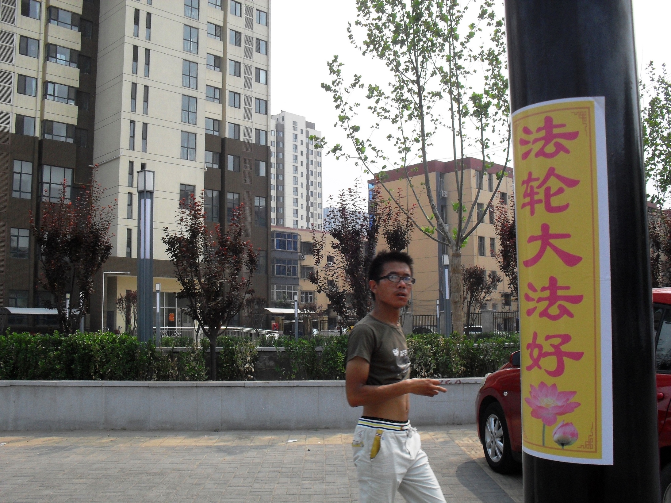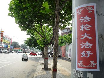 法轮功”,“起诉江泽民,还人间正道”,“停止迫害法轮功,把江泽民送上法庭”,“审判江泽民,还法轮功清白”,“法轮大法好”,“真善忍好”,“世界需要真善忍”等真相不干胶。