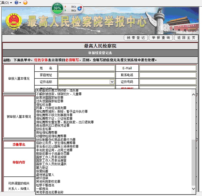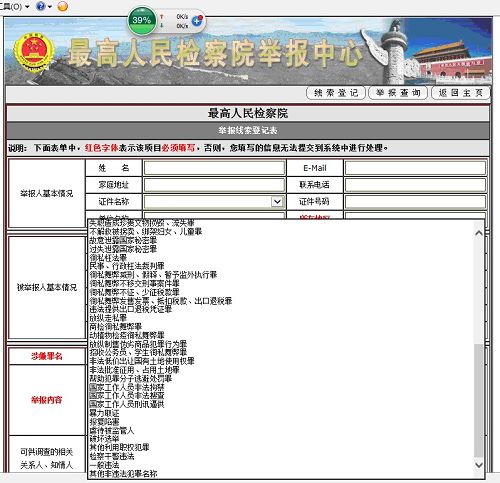 明慧网2015年7月9日发表的《图解:如何到最高检察院官网上提交控告信》。文章中说在最高检察院网上举报中心告江,只有滥用职权罪在其受理范围内。 但我在最高人民检察院举报中心网站提交诉江控告信时看到:控告的罪名并不是只有滥用职权罪在其受理范围内,徇私枉法罪、国家工作人员非法拘禁、国家工作人员非法搜查、国家工作人员刑讯逼供、暴力取证、报复陷害、虐待被监管人等罪名的指控都可以受理(详见网站截图)。但是网站只能选择一项涉嫌罪名,其他罪名我们可以在举报内容里加上。