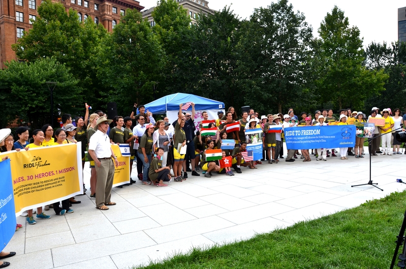 十九岁的陈奕珊(Annie)是“骑向自由”车队队长,她介绍说,我们六月一日从洛杉矶出发,下个周末将到达华盛顿特区,全程三千英里。我这里要告诉你们的不是这路程的遥远与艰辛,我要强调的有几点:一个是勇气,因为我们在这个过程中都克服了许多困难;一个是信心,因为不管中国大陆怎么打压,我们知道“真、善、忍”都是对的;第三个是自由,我们要为那些因为信仰而遭受迫害的人们、还有孩子发声。那些孩子们年纪小,也无法表达他们经历的痛苦。他们需要你、我的帮助,人性与道义上的支持。