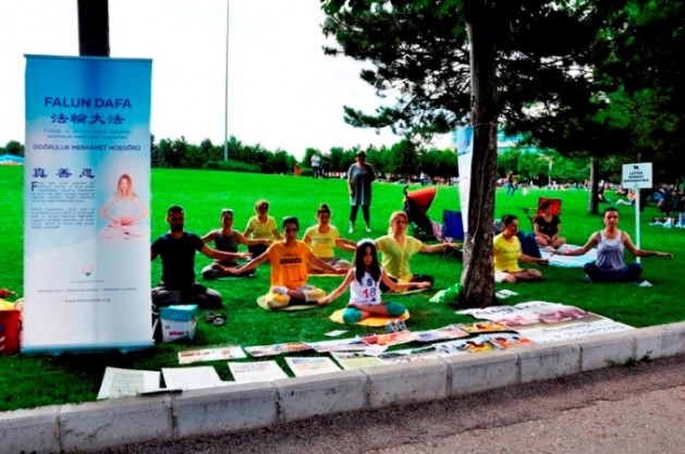 在两天的活动中,来自土耳其不同城市的法轮功学员,在安卡拉举办了一系列活动。七月十二日,学员们先后在Dikmen Vadisi公园和Ahlatlibel Piknik公园,以演示法轮功五套功法和发放传单等方式,向周末前来那里散步游玩的当地民众介绍法轮功。