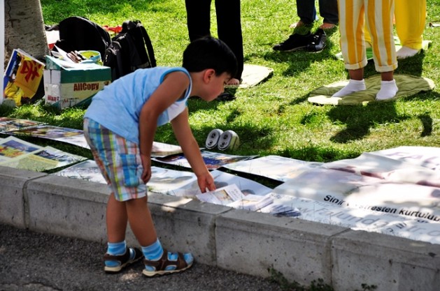 抗议活动结束后,学员们于当天下午五时许来到安卡拉著名的天鹅公园(Kugulu Park),以集体演示法轮功五套功法的形式,向聚集在那里的民众介绍法轮功,活动期间散发了大量介绍法轮功的真相材料。