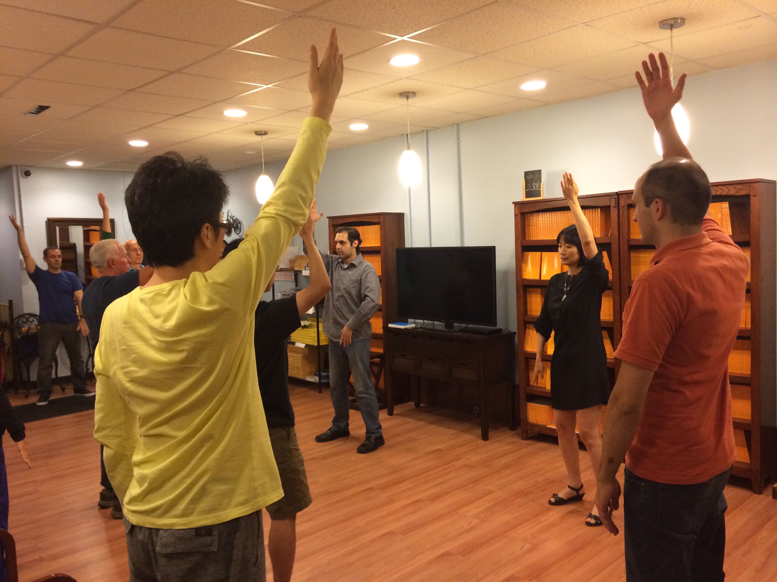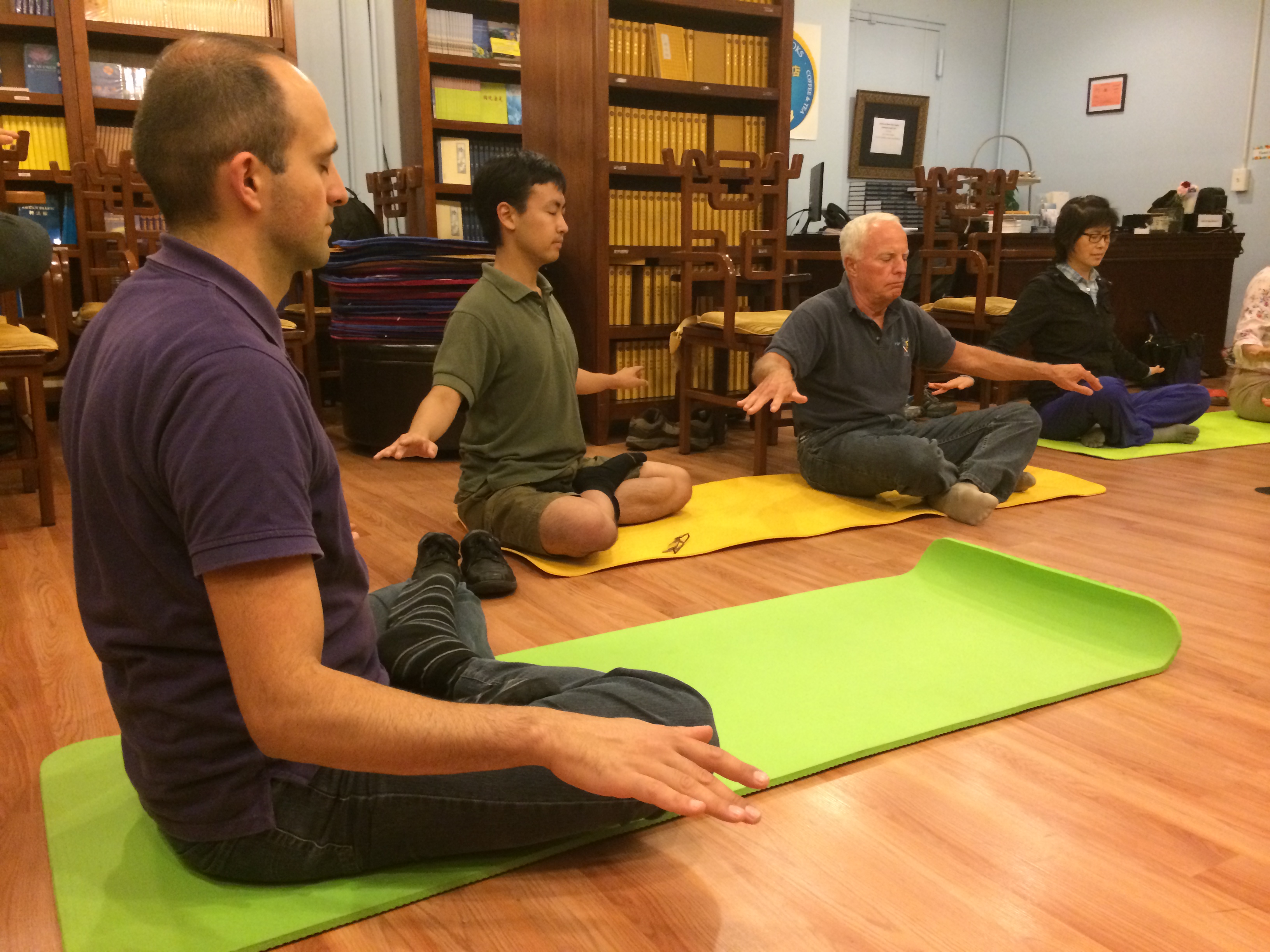 无巧不成书。这期班上另一位小姐也姓林。这位林小姐出生在台湾,在美国生活和工作已经很多年了。在哥伦比亚大学工作多年,突然失去工作,之后更身患癌症,生活发生很大变故。早些时候她接受了手术治疗,目前在化疗中。她早些时候因病参加过一次九天班,但没有学完;这次她坚持完成了全部九天的学习,很坚强。中途有一天伤口很痛,但还是坚持听课和学功。她说,她不能先死,因为不能让她的妈妈伤心,妈妈先死了自己才能死。林小姐的妈妈住在台湾,信佛。一次对佛祷告后,妈妈告诉她,你没有病。她对书店员工说,不知道为什么说“不是病”,不是病就不是病吧。