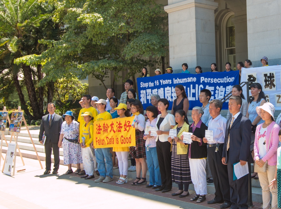 集会上,有多位法轮功学员发言,控诉前中共头目江泽民发起的迫害,使他们本人和家人受到身体、精神和经济等方面的非人道的迫害和折磨。他们已经发出控告书,寄往中共的最高检察院和最高法院,要求刑事起诉江泽民。
