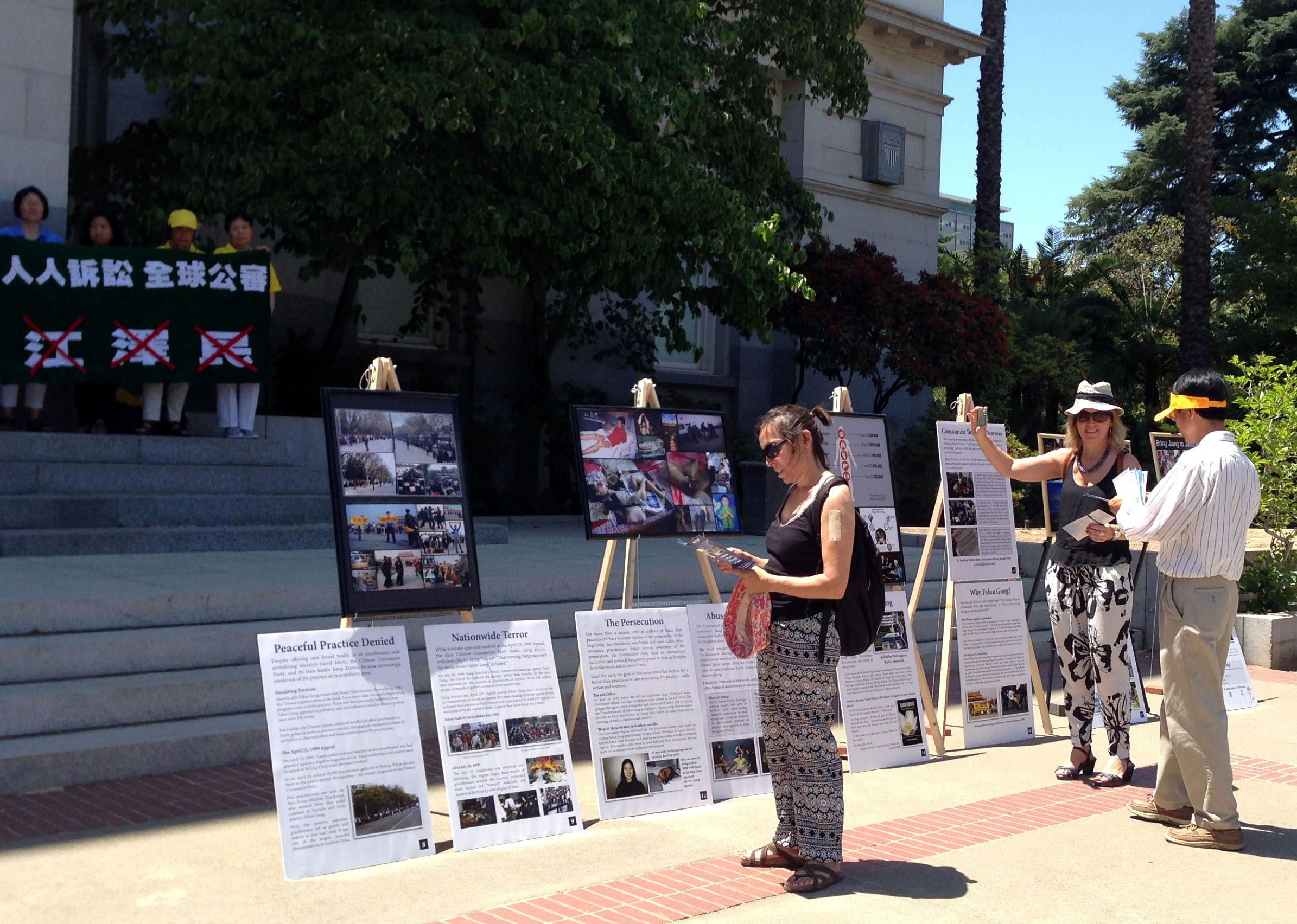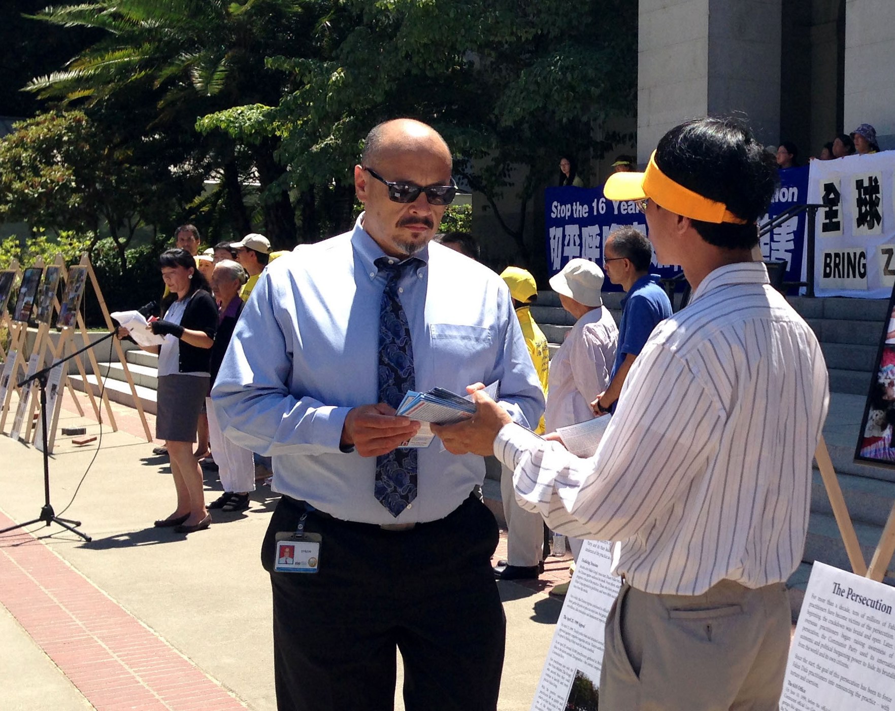 ![]() 法轮功学员向州府雇员讲真相 |